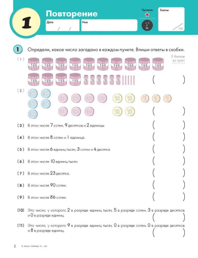 Этот сборник заданий познакомит вашего ребенка с деньгами, способами измерения длины, веса, объёма, температуры и времени, а также с объемными и плоскими геометрическими фигурами. Он является уровнем 3 в методике индивидуального обучения KUMON в разделе «Математика для школьников».