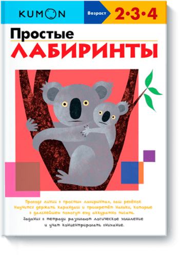 «Простые лабиринты» - это рабочая тетрадь для развития мелкой моторики и подготовки руки к письму. В ней собраны простейшие лабиринты, рисуя в которых ребёнок научится держать карандаш и уверенно проводить линии. Лабиринты учат ребёнка концентрировать своё внимание, осмысливать то, что он видит, и затем действовать в соответствии с тем, что понял. Для того чтобы найти выход из лабиринта, ребёнку придётся опробовать разные пути. В результате он учится рассуждать, анализировать и творчески мыслить. Все эти навыки необходимы для его будущего обучения. Тетрадь предназначена для занятий с детьми от 2 до 4 лет.