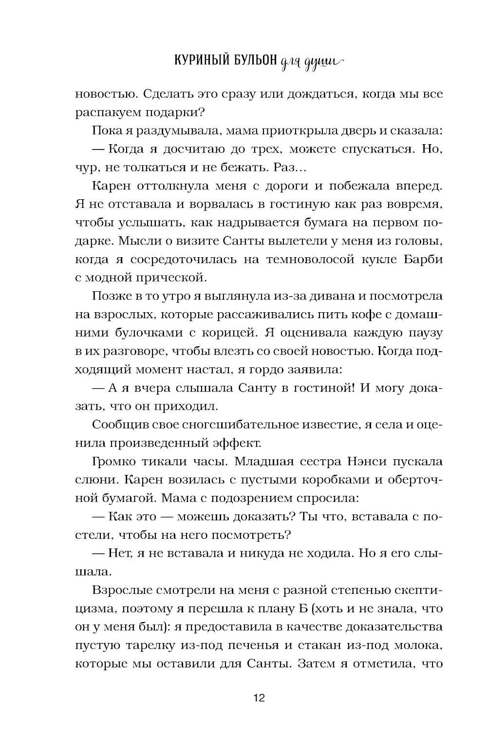 В детстве вся семья, самые близкие и родные люди, собирались вместе за ужином, а бабушка или мама накрывали праздничный стол. Сегодня забота и теплые эмоции нужны вашей душе. Рождественские истории из «Куриного бульона» согреют ваши сердца в долгие зимние вечера и подарят праздничное настроение. Реальные истории о семейных традициях, сплачивающих всю семью, о любви, способной преодолеть трудности, и о настоящих чудесах, которые мы сами можем сотворить для наших близких.| Издательство | Эксмо |