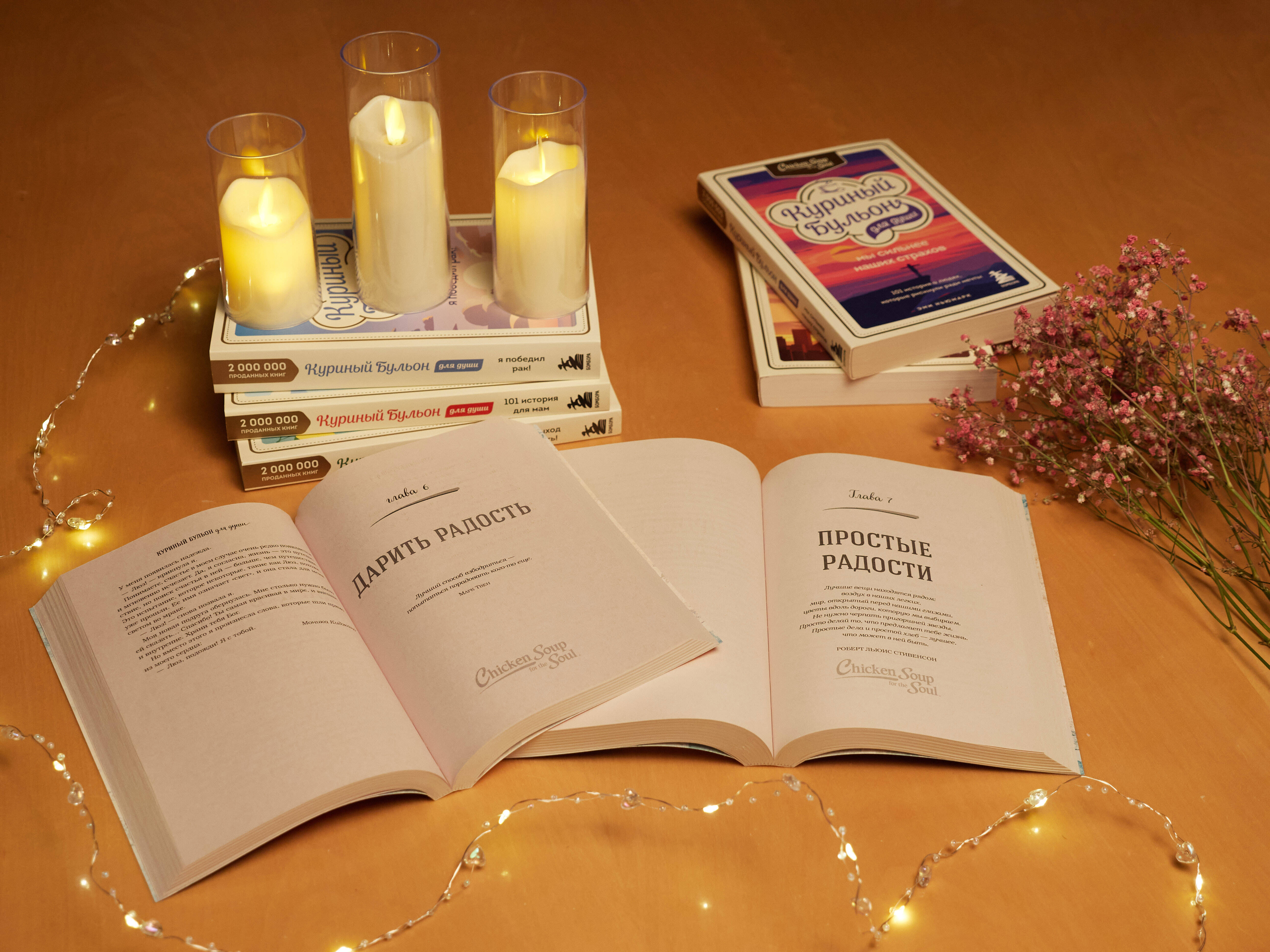 САМАЯ ПРОДАВАЕМАЯ В МИРЕ СЕРИЯ! БОЛЕЕ 500 000 000 ПРОДАННЫХ КОПИЙ! ФЕНОМЕН В ИСТОРИИ КНИГОИЗДАНИЯ! Как все начиналось История создания книги «Куриный бульон» вдохновляет не меньше, чем маленькие истории, из которых она состоит. Джек Кэнфилд и Марк Хансен, оба популярные мотивационные спикеры, любили свои выступления «приправить» парочкой вдохновляющих историй. После тренингов многие обращались к ним: «А где можно найти ту историю про девочку-скаута? Я бы купил книгу ее сыну», «А та история про парня и щенка - ее можно где-то прочитать?». В течение года Кэнфилд и Хансен записывали истории, которые пережили сами или услышали от знакомых, и когда их набралось 101 - разослали по издательствам. Они получили 144 отказа. Тогда Джек и Марк решили найти покупателей еще до публикации книги, в надежде переубедить издателей. Они рассказывали о ней своим знакомым и слушателям тренингов и всех, кто был заинтересован, просили написать расписку о покупке будущей книги. Когда таких расписок набралось более 20 000, Джек и Марк снова обратились к издателям. Книгу напечатали, и все, кто давал обещание, купили ее. А дальше… продажи встали. Джек и Марк не хотели сдаваться. У них была цель - продать 1,5 миллиона за 1,5 года. Тогда они придумали «Правило пяти»: ежедневно совершать по пять активных шагов по продвижению и продаже книги. С этого момента Кэнфилд и Хансен каждый день рассылали по 5 экземпляров журналистам, голливудским звездам, делали по 5 звонков руководителям компаний с предложением подарить книги сотрудникам. В итоге через 1,5 года было продано 1,3 миллиона экземпляров. Издатель попросил написать продолжение. Со временем книга, которую отвергли 144 издательства, стала одним из самых успешных проектов в истории книгоиздания. Иногда перемены приходят в нашу жизнь в виде событий, которые мы не в силах изменить. А иногда мы сами понимаем: дальше так жить нельзя. Некоторые герои этого сборника решились на кардинальные перемены: переехали в новый дом или даже страну, поменяли сферу деятельности, избавились от пагубных привычек или отношений, которые отравляли им существование. А кто-то просто сместил приоритеты, уделяя своему здоровью и душевному состоянию больше внимания и времени, и от этого хорошая жизнь стала еще лучше. Мы надеемся, что эти истории подарят вам вдохновение, веру, вернут страсть и помогут решиться на те перемены, к которым лежит ваша душа. Расправьте крылья, у вас всё получится!| Издательство | Эксмо |