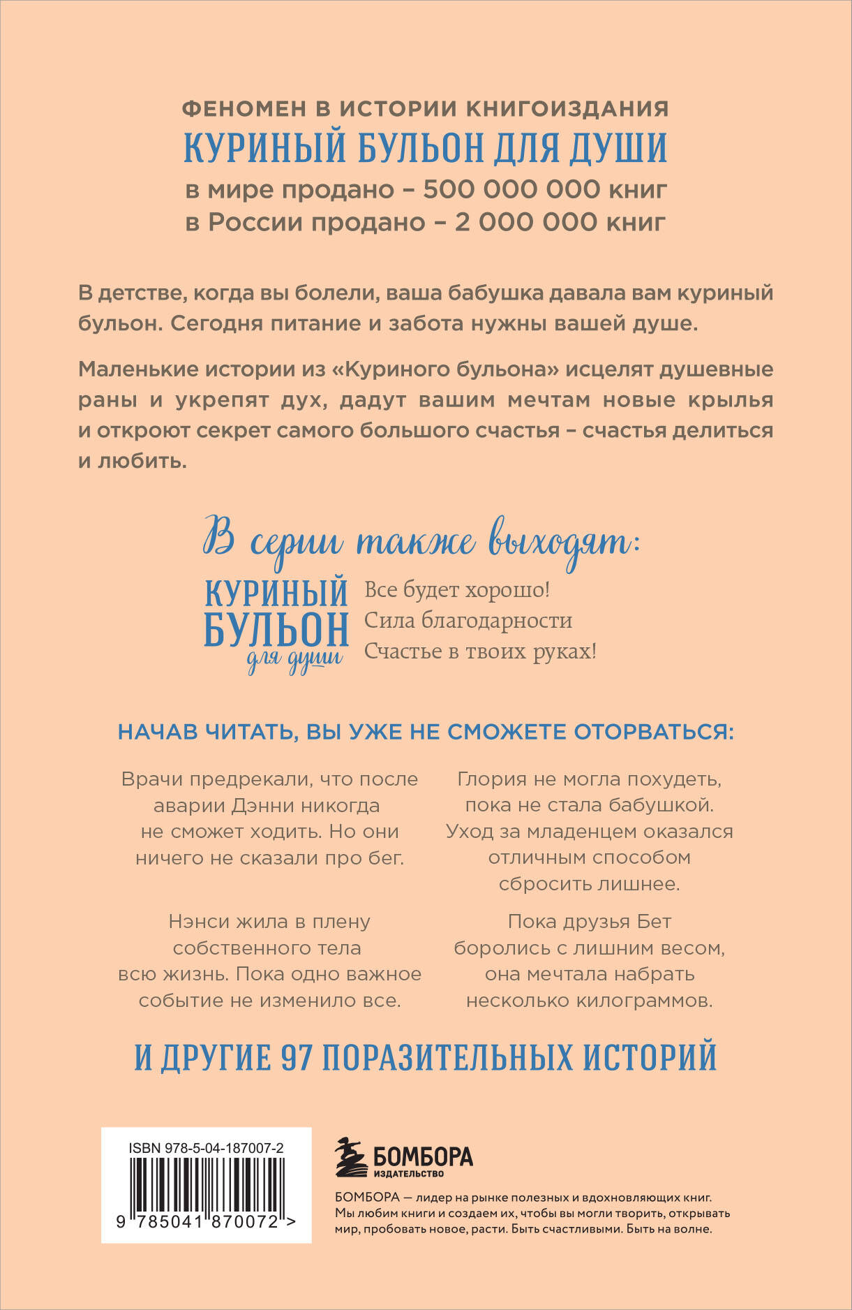 Аннотация: Куриный бульон для души. Создай себя заново. 101 вдохновляющая история о фитнесе, правильном питании и работе над собой (11-е издание)