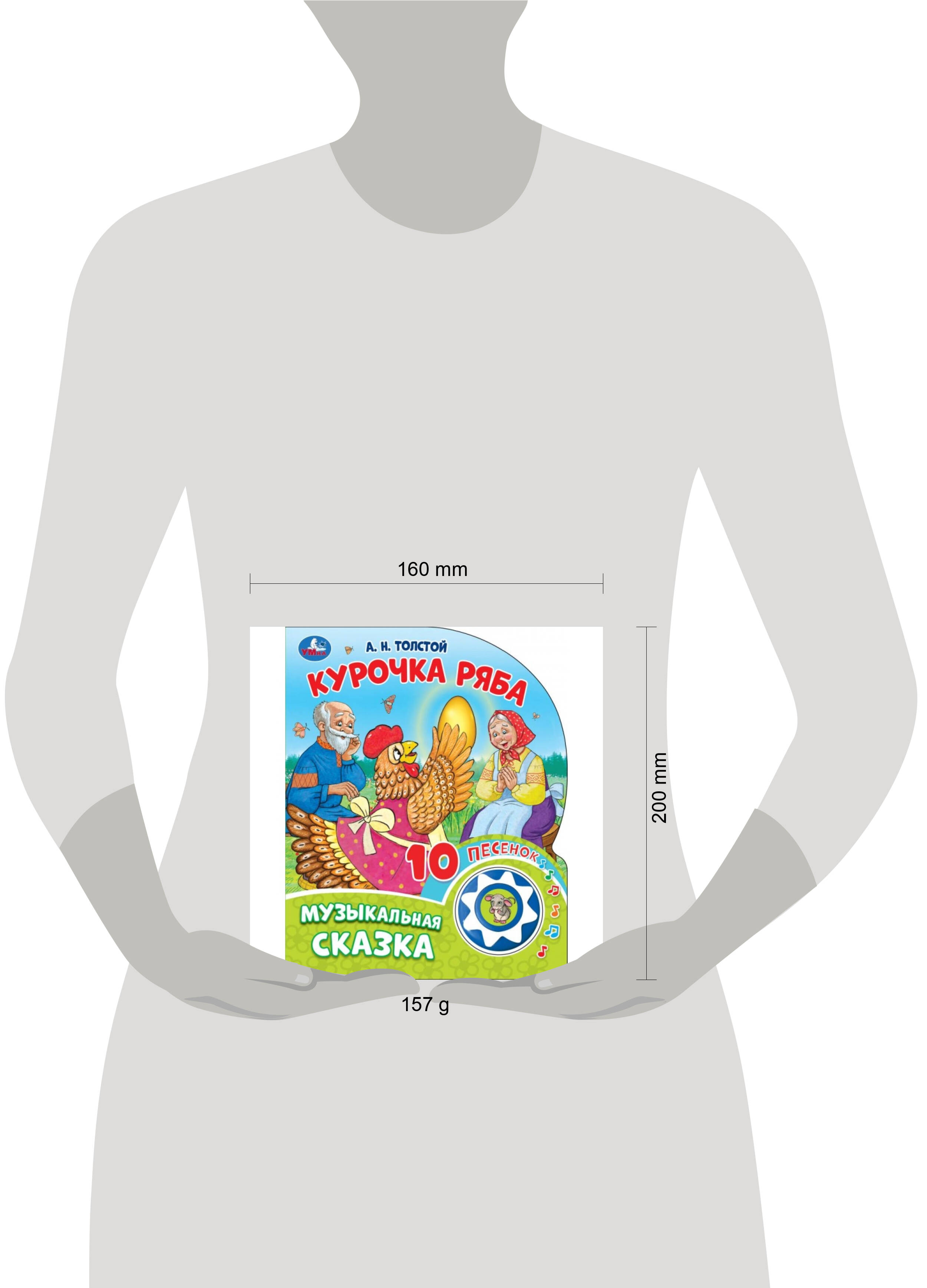 Музыкальная книга "Курочка Ряба" ТМ "УМка" станет прекрасным подарком для малыша: - в обработке А. Н. Толстого - 1 звуковая кнопка - 10 песенок по мотивам сказки - любимая сказка - яркие иллюстрации - фигурная вырубка Ребёнок с удовольствием будет листать плотные страницы, рассматривать красочные картинки, вместе с родителями читать известную сказку и, конечно, нажимать на кнопку и слушать мелодичные песенки. Малыш легко освоит включение звука: по нажатию на кнопку песенка включится, при втором нажатии выключится, при третьем - заиграет следующая композиция. Благодаря компактному размеру книгу удобно взять с собой в дорогу. Чтение музыкальной книги ТМ "УМка" и игра с ней развивают: - слуховое восприятие - мелкую моторику - фантазию - образное мышление - память - тактильное восприятие Объём: 10 стр. Формат: 160 х 200 мм. Материал: пластмасса + картон. Работает от 1-ой батарейки типа CR2032 (в комплекте). Рекомендовано детям младшего дошкольного возраста.| Издательство | С-Маркет ООО |