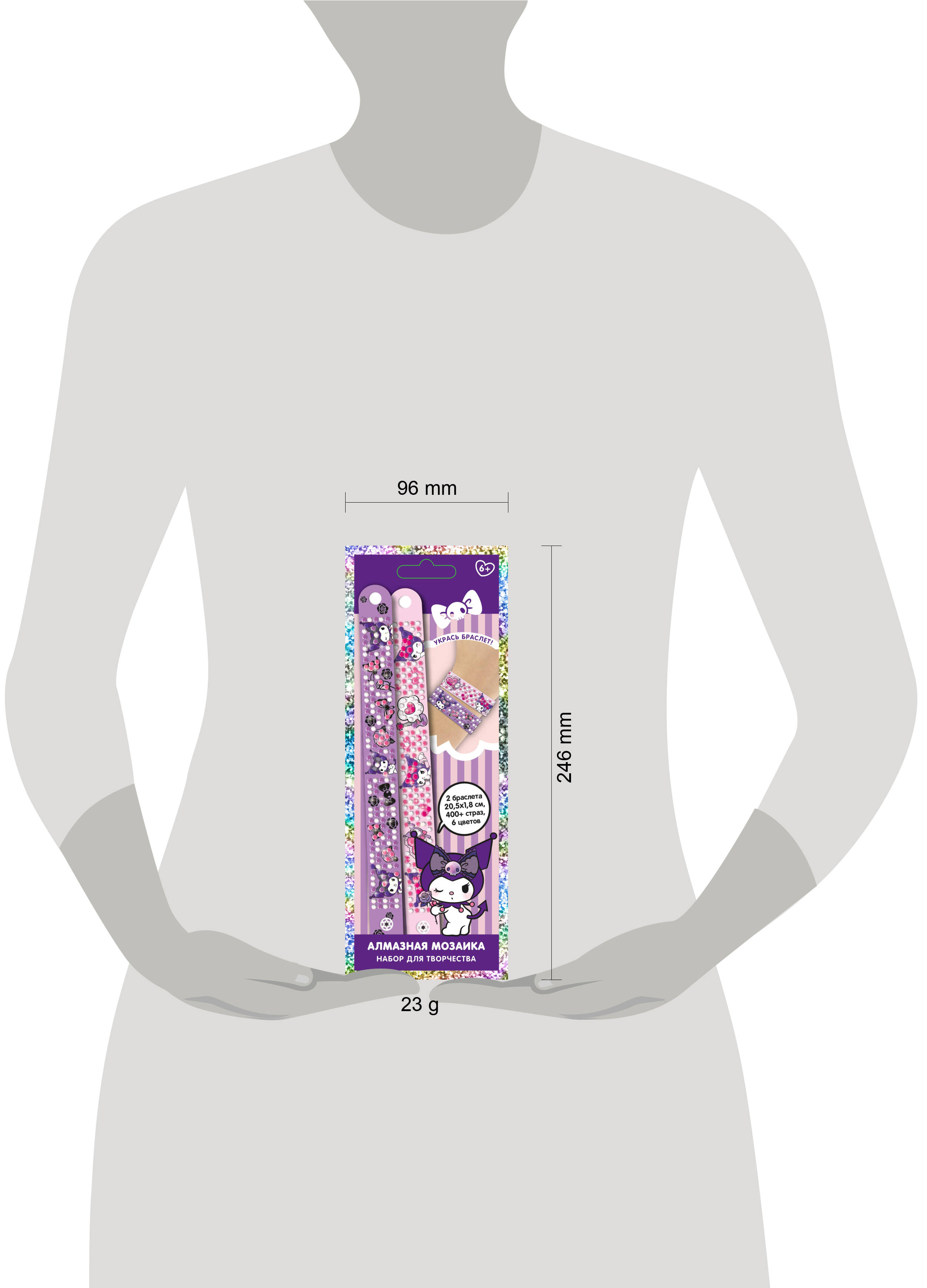 Новинка от Kuromi Алмазная мозаика "собери свой браслет" - это увлекательное хобби для детей. Самостоятельно сделайте два ярких переливающихся браслета! В наборе есть все необхожимые инструменты. Снимите пленку с заготовки, наполните стилус липким гелем и захватите маленький кристалл. Затем аккуратно переносите камешки на основу, зацепив их аппликатором с выпуклой стороны. Выложите алмазы по схемам - оригинальное украшение готово. Все браслеты сделаны из мягкого материала Эва, что обеспечивает хоршее облегание, а удобная застёжка обеспечивает комфорт при ношении.| Издательство | Премьера Паблишинг ООО |