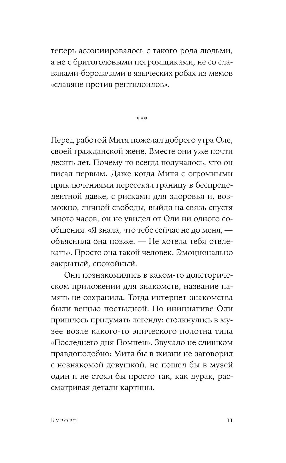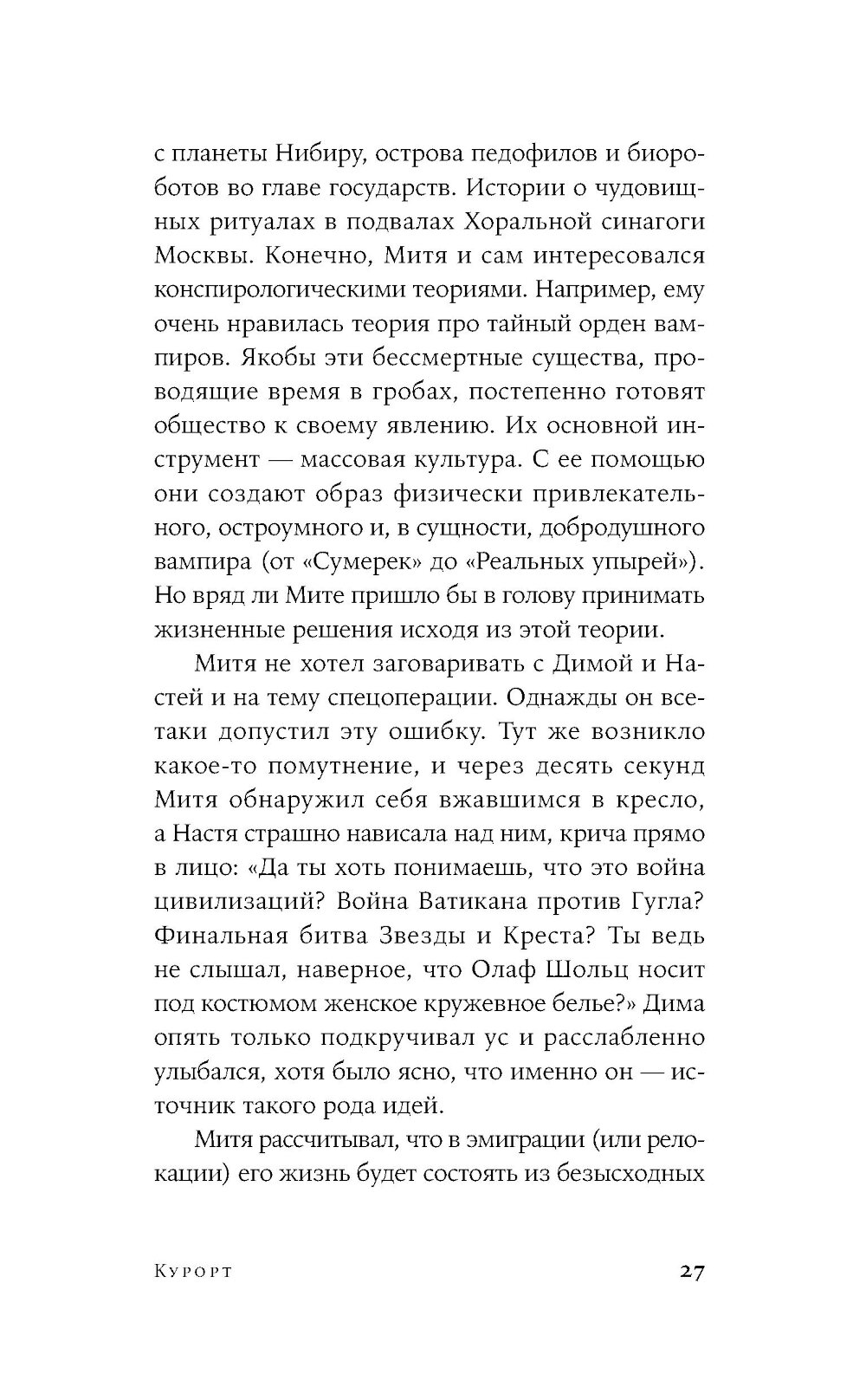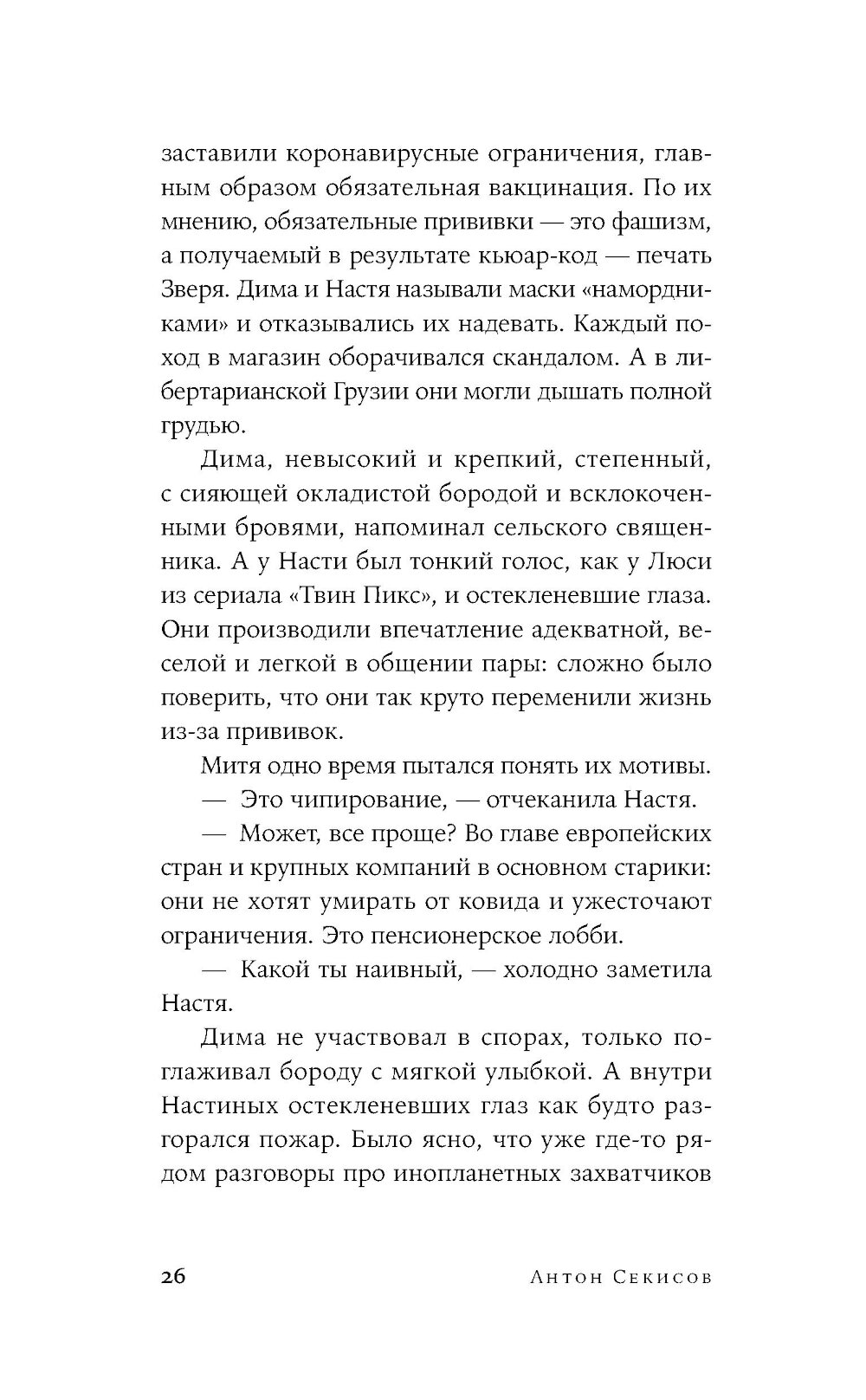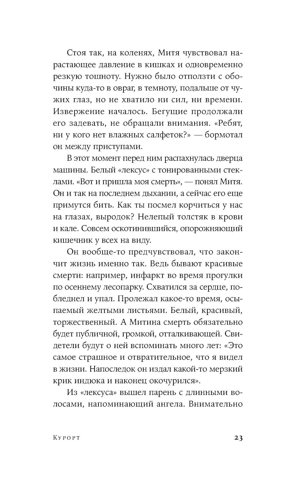 Мите тридцать семь, он бывший корреспондент столичной газеты, но уже два месяца живет в Грузии и работает редактором соцсетей в приватном аккаунте. Так официально называлась эта вакансия, но на самом деле Митя просто переписывается с незнакомыми пользователями от лица двадцатидвухлетней вебкам-модели Лизы. Вместе с другими релокантами он завис на побережье странного зыбкого безвременья, где можно пить «Фанту», смотреть диснеевские мультфильмы и бесконечно перебирать в памяти фрагменты прошлого. Происходит как будто много разных странных и не очень событий, но на самом деле Митя просто замер на берегу в ожидании сам еще не понял чего и наблюдает, как покачивается на волнах его нынешняя, обманчиво легкая, как пена, жизнь.| Издательство | Альпина нон-фикшн |