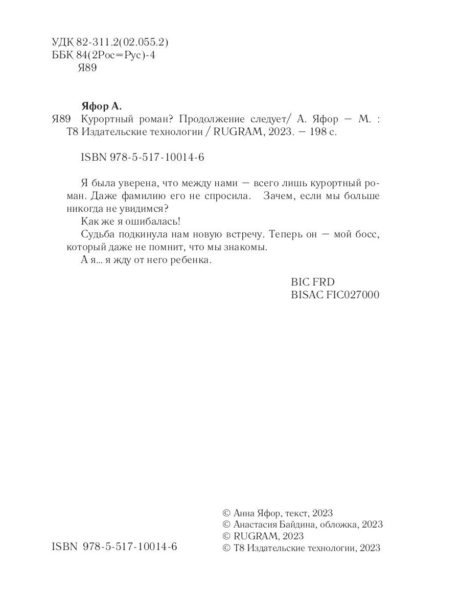 Я была уверена, что между нами - всего лишь курортный роман. Даже фамилию его не спросила. Зачем, если мы больше никогда не увидимся? Как же я ошибалась! Судьба подкинула нам новую встречу. Теперь он - мой босс, который даже не помнит, что мы знакомы. А я… я жду от него ребенка.| Издательство | Т8 RUGRAM |