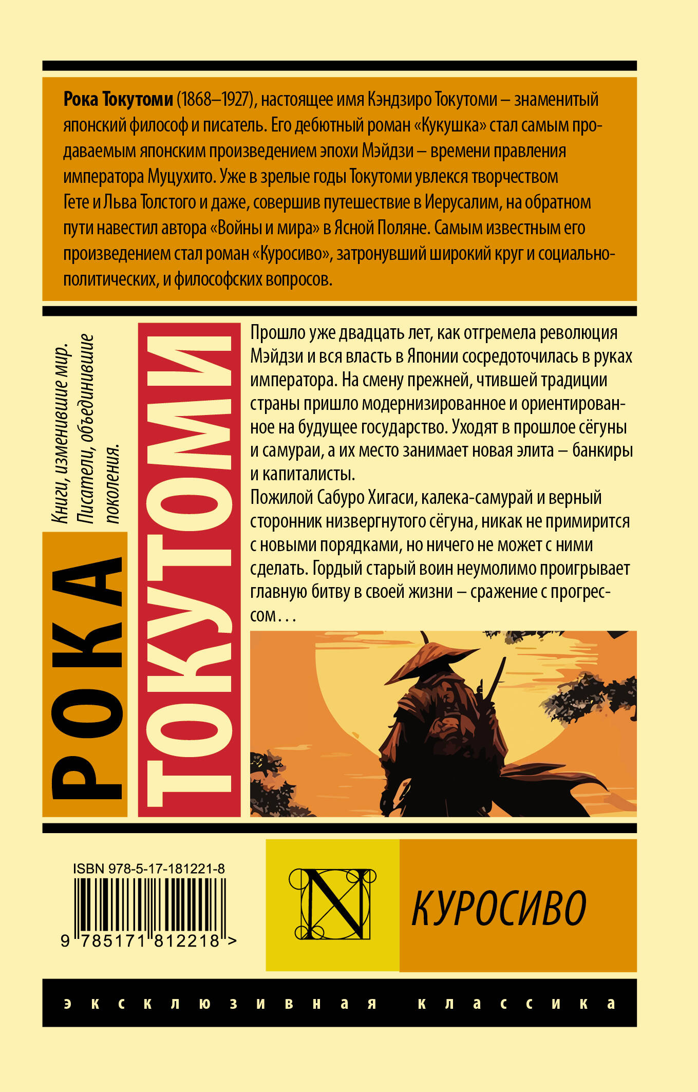 Прошло уже двадцать лет, как отгремела революция Мэйдзи и вся власть в Японии сосредоточилась в руках императора. На смену прежней, чтившей традиции страны пришло модернизированное и ориентированное на будущее государство. Уходят в прошлое сёгуны и самураи, а их место занимает новая элита - банкиры и капиталисты. Пожилой Сабуро Хигаси, калека-самурай и верный сторонник низвергнутого сёгуна, никак не примирится с новыми порядками, но ничего не может с ними сделать. Гордый старый воин неумолимо проигрывает главную битву в своей жизни - сражение с прогрессом…| Издательство | Издательство "АСТ" |