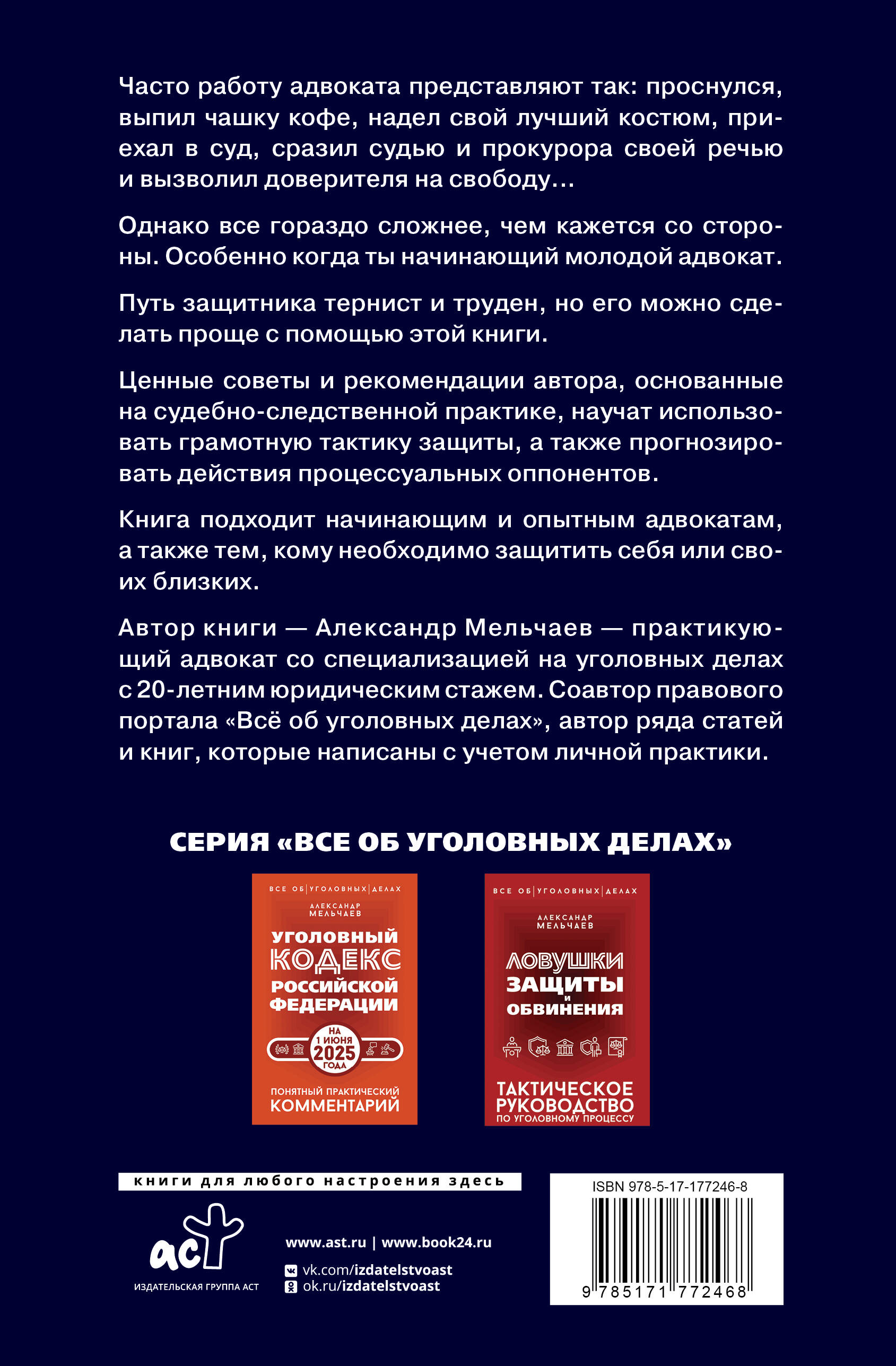 Часто работу адвоката представляют так: проснулся, выпил чашку кофе, надел свой лучший костюм, приехал в суд, сразил судью и прокурора своей речью и вызволил доверителя на свободу... Однако все гораздо сложнее, чем кажется со стороны. Особенно когда ты начинающий молодой адвокат. Путь защитника тернист и труден, но его можно сделать проще с помощью этой книги. Данное издание раскрывает практические нюансы и проблемы, с которыми можно столкнуться на разных стадиях уголовного процесса. Ценные советы и рекомендации автора, основанные на судебно-следственной практике, научат использовать грамотную тактику защиты, а также прогнозировать действия процессуальных оппонентов. Издание подходит начинающим и опытным адвокатам, а также тем, кому необходимо защитить себя или своих близких. Книги серии "Все об уголовных делах" тесно связаны между собой и дополняют друг друга, помогая глубже понять отдельные аспекты работы адвоката. Однако каждая из них самодостаточна и может служить полноценным практическим руководством, поэтому их можно читать в любом порядке.| Издательство | Издательство "АСТ" |