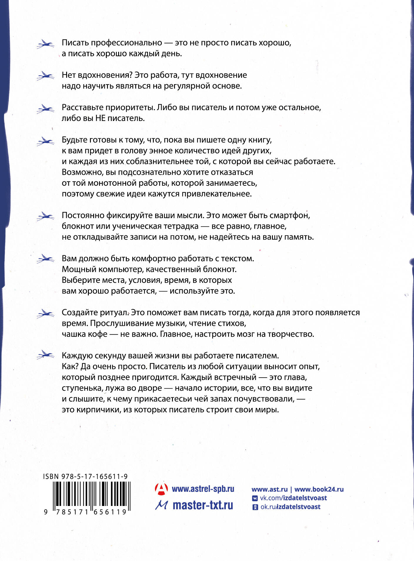 "Читателям этого знать не надо, но авторы должны отдавать себе отчет, что мастер слова - это нечто большее, чем человек, который написал некую историю. Некую историю раз в жизни может написать любой нормальный человек. Скорее всего, это будет автобиографический текст и скорее всего он будет неплох: ведь если выжать в одну книгу все самое забавное, что было в жизни, должно получиться как минимум нескучно. Писатель - это другое. В этой книге мы будем говорить именно о тех вещах, которые делают писателя не таким, как все". Герой, идея, мир, история вашей книги, структура текста, композиция, жанры - об этом, а также о том, как работать с издательством, что нужно знать об авторском праве, рекламе и продвижении книг. Александр Прокопович - главный редактор "Астрель-СПб" (издательство "АСТ"), писатель и сценарист, организатор и преподаватель литературных курсов "Мастер текста", создатель и продюсер литературной премии "Рукопись года" и "Самого страшного фестиваля".| Издательство | Издательство "АСТ" |