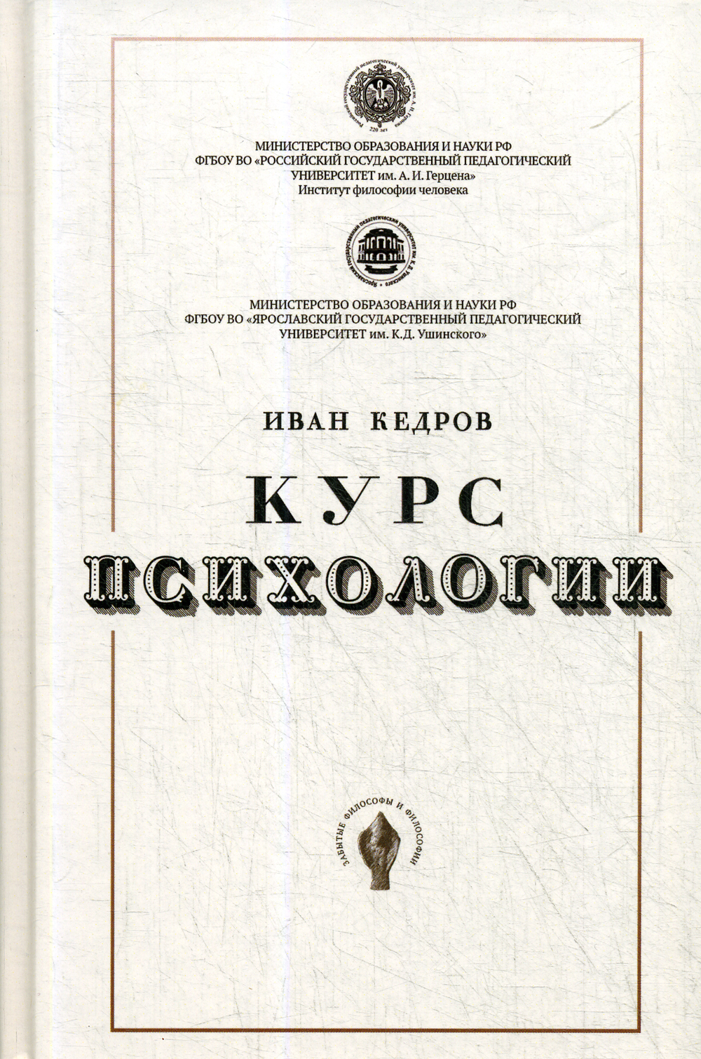 Издаваемая Институтом философии человека при Петербургском университете имени Герцена серия «Забытые философы и философии» предполагает своей задачей возвращение в научный оборот тех авторов, чьи сочинения не просто утрачены для России, но и сохраняют те направления возможного развития науки, которые были отброшены в связи с научной модой или требованиями времени. В этом издании мы публикуем «Курс психологии» Ивана Андреевича Кедрова (1811-1846(?)), которого по праву можно считать одним из основателей Ярославской школы психологии. Но об этом лучше написал прекрасный ярославский психолог Владимир Александрович Мазилов, статью которого о Кедрове мы прилагаем к этому изданию.| Издательство | Роща |