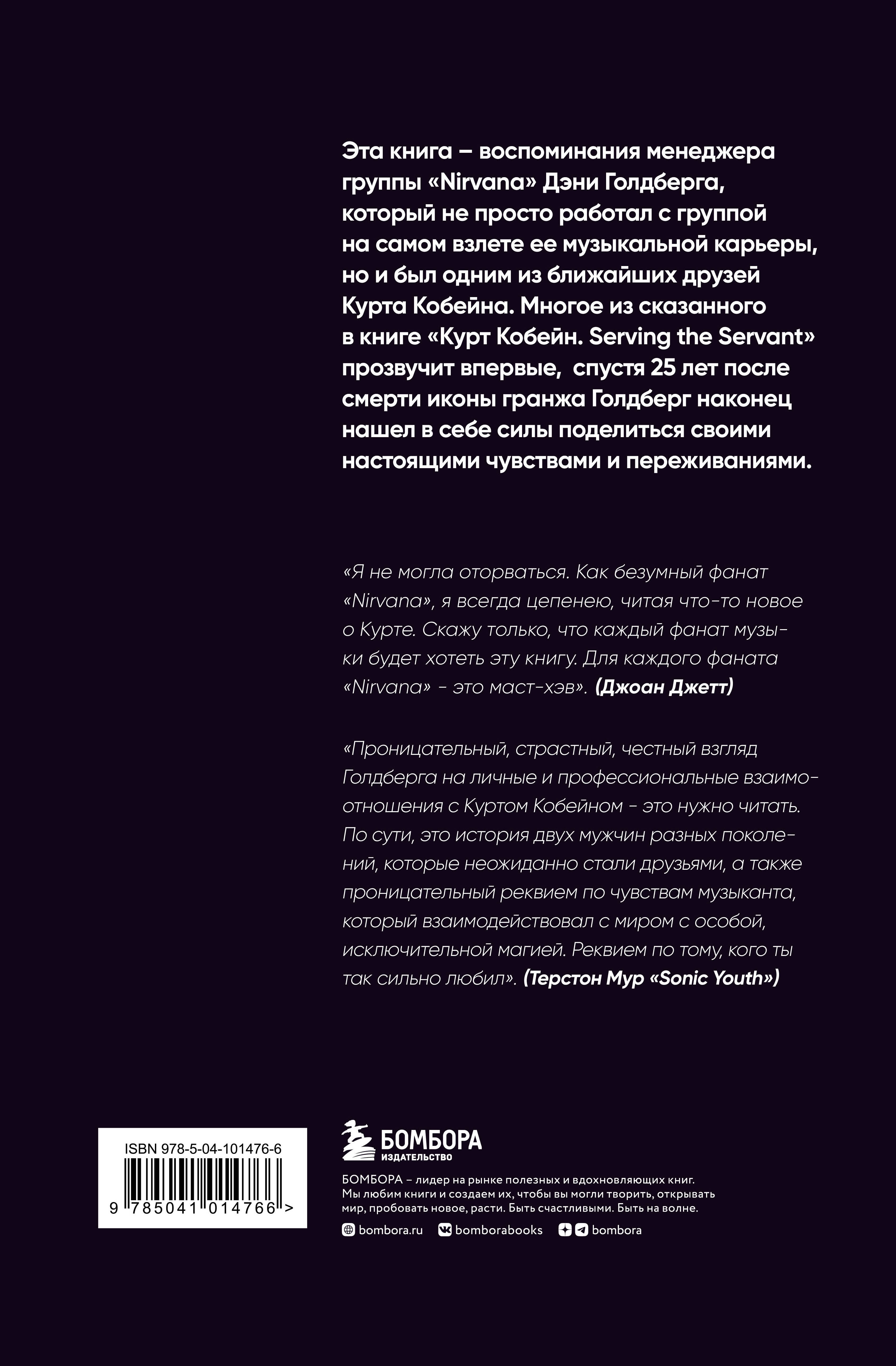 К 25-летию со дня смерти Курта Кобейна. К 50-летию барабанщика легендарной группы «Nirvana» Дэйва Гролла. Уникальная биография иконы гранжа Курта Кобейна, написанная бывшим менеджером группы «Nirvana» Дэнни Голбергом. Взгляд на личность и судьбу Кобейна от человека, который работал с ним на самом взлете карьеры и был рядом с Куртом в экстремально опасные, грустные и счастливые моменты. Голдберг писал о фронтмене «Nirvana» не только как о музыканте, с которым ему довелось работать, но и как о близком друге. Многие факты из жизни Курта в этой книге будут описаны впервые. Как Кобейн достиг феерического успеха, став создателем жанра гранж и суперхаризматичным фронтменом, идейным вдохновителем целого поколения? Голдберг рассказывает об этом, а также о сложном внутреннем мире Курта, его депрессивных расстройствах, любви и одержимости, конфликтах с социумом, невероятном таланте и фантазиях. На сегодняшний день книг о группе «Nirvana» так мало, что каждая из них читается на одном дыхании. «Маст-хэв» для любого поклонника группы.| Издательство | ООО "Издательство "Эксмо" |