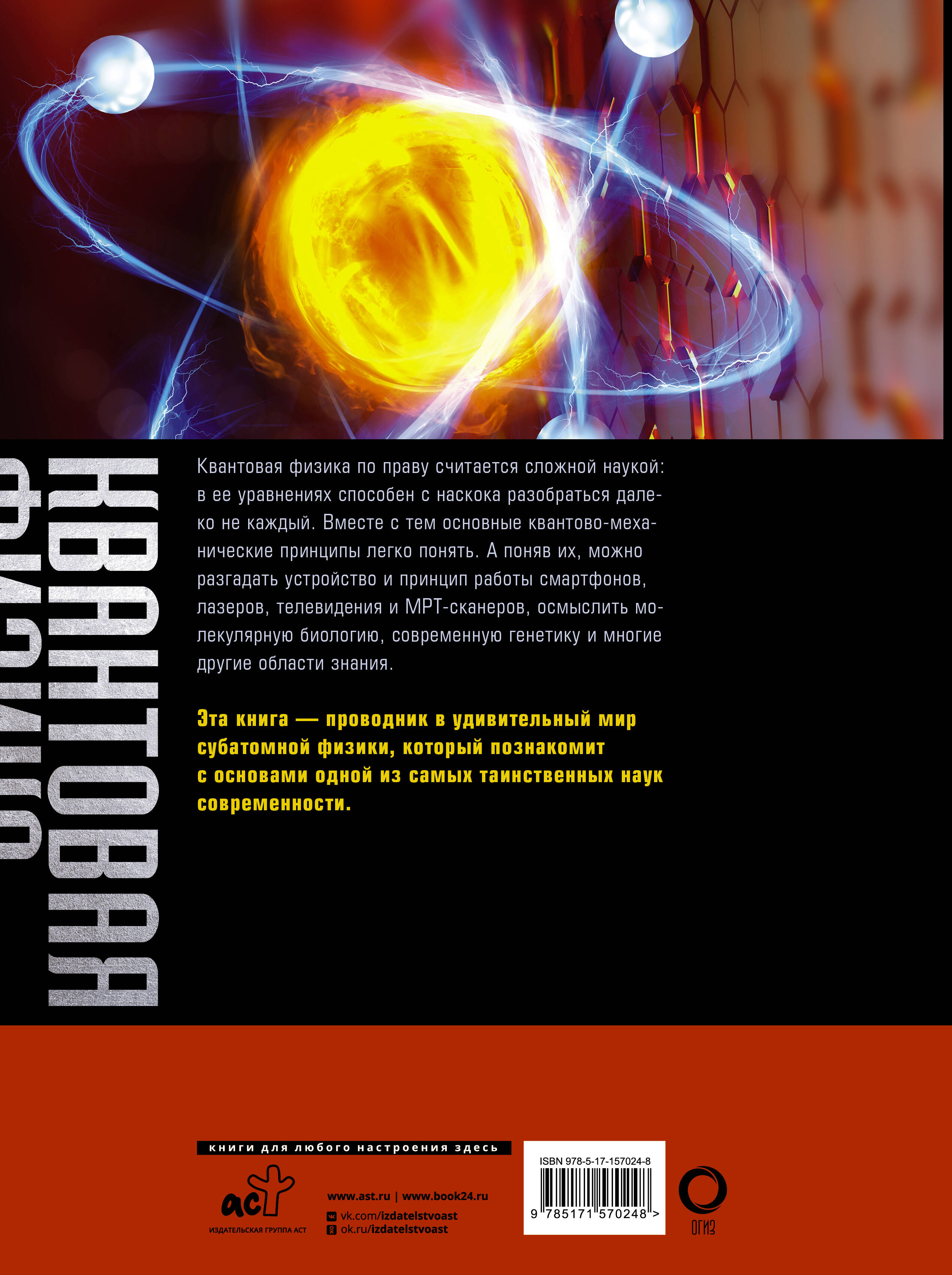 Квантовая физика по праву считается сложной наукой: в ее уравнениях и вправду трудно разобраться. Вместе с тем основные квантовомеханические принципы легко понять. А поняв их, можно разгадать устройство и принцип работы смартфонов, лазеров, телевидения и МРТ-сканеров, осмыслить молекулярную биологию, современную генетику и многие другие области знания. Эта книга - проводник в удивительный мир субатомной физики, который познакомит с основами одной из самых таинственных наук современности.| Издательство | ИЗДАТЕЛЬСТВО "АСТ" |