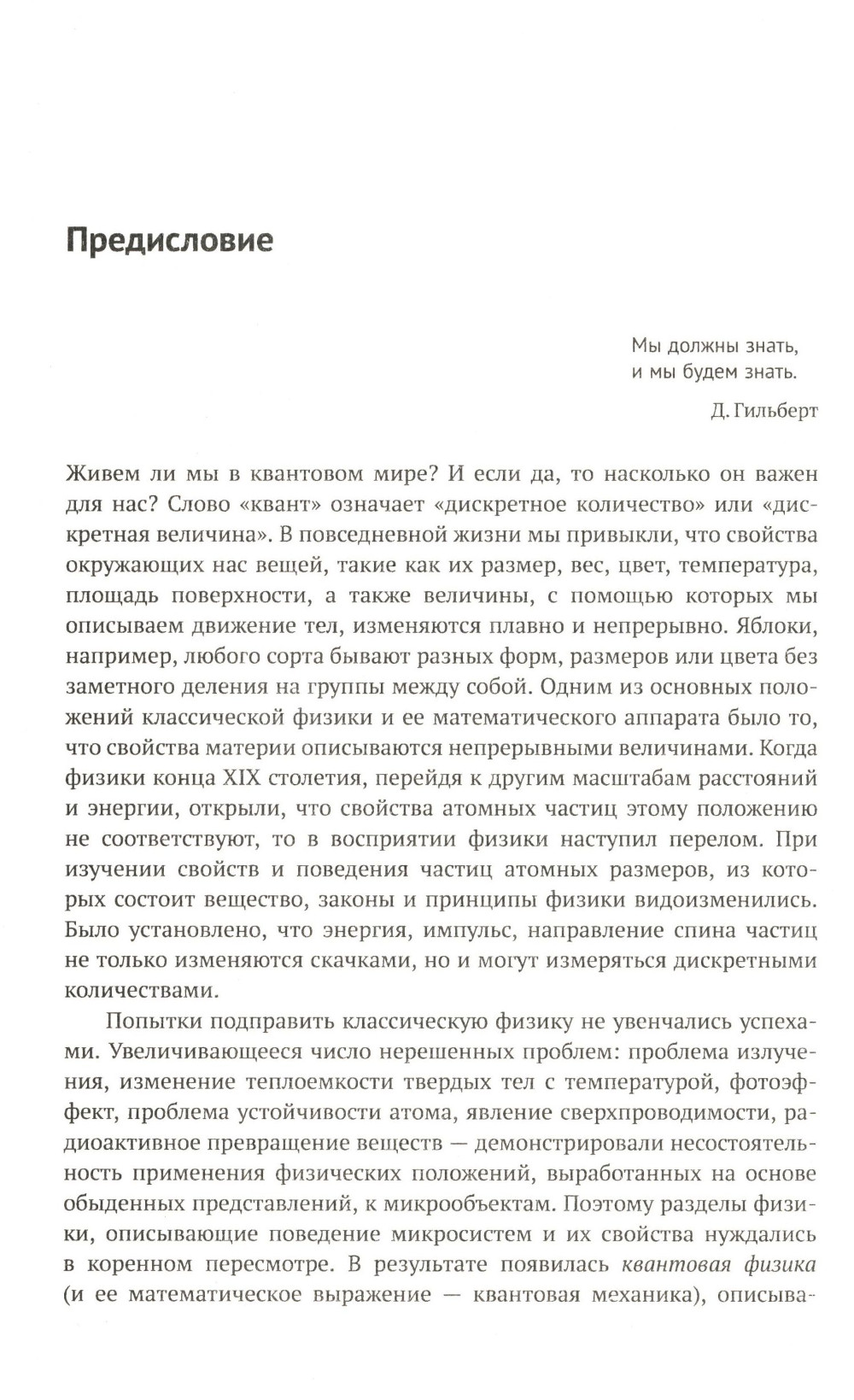 Одним из основных принципов квантовой механики является недетерминированность, из которой следует вероятность. Нет возможности предсказать точно будущее положение и импульс частицы, нет способа отличить одну частицу от другой частицы того же сорта, нет различия между квантами электромагнитного излучения одной и той же частоты. На новых принципах, сформулированных М. Планком, Л. де Бройлем, В. Гейзенбергом, В. Паули, Э. Ферми, А. Эйнштейном, Д. Гильбертом была построена квантовая механика, изменившая представления о тех кирпичиках, из которых строится мир, и о связи между ними. И несмотря на вероятностную трактовку результатов измерений, объяснения и предсказания квантовой механики очень конструктивны и эффективны в сравнении с классической физикой. Достаточно сказать, что третья и четвертая научные революции, имеющие реальные социальные последствия, имеют в своих истоках квантовые представления об окружающем мире. Учебное пособие написано по материалам лекций заключительной части курса общей физики, читаемого авторами на протяжении многих лет в Московском авиационном институте. Оно включает разделы, в которых излагаются начала квантовой физики, основы квантовой механики, атомной физики, физики твердого тела, физики ядра и элементарных частиц. Некоторые вопросы, относящиеся к формализму вычислений квантовой механики для атомной физики, выходящие за рамки стандартной программы курса, и обзор современных интерпретаций подходов квантовой механики выделены в приложения. В книге достаточно много схем, иллюстраций и научно-технических пояснений, сопровождающих текст. Пособие предназначено для студентов, аспирантов, инженеров, младших научных сотрудников.| Издательство | ЛЕНАНД |