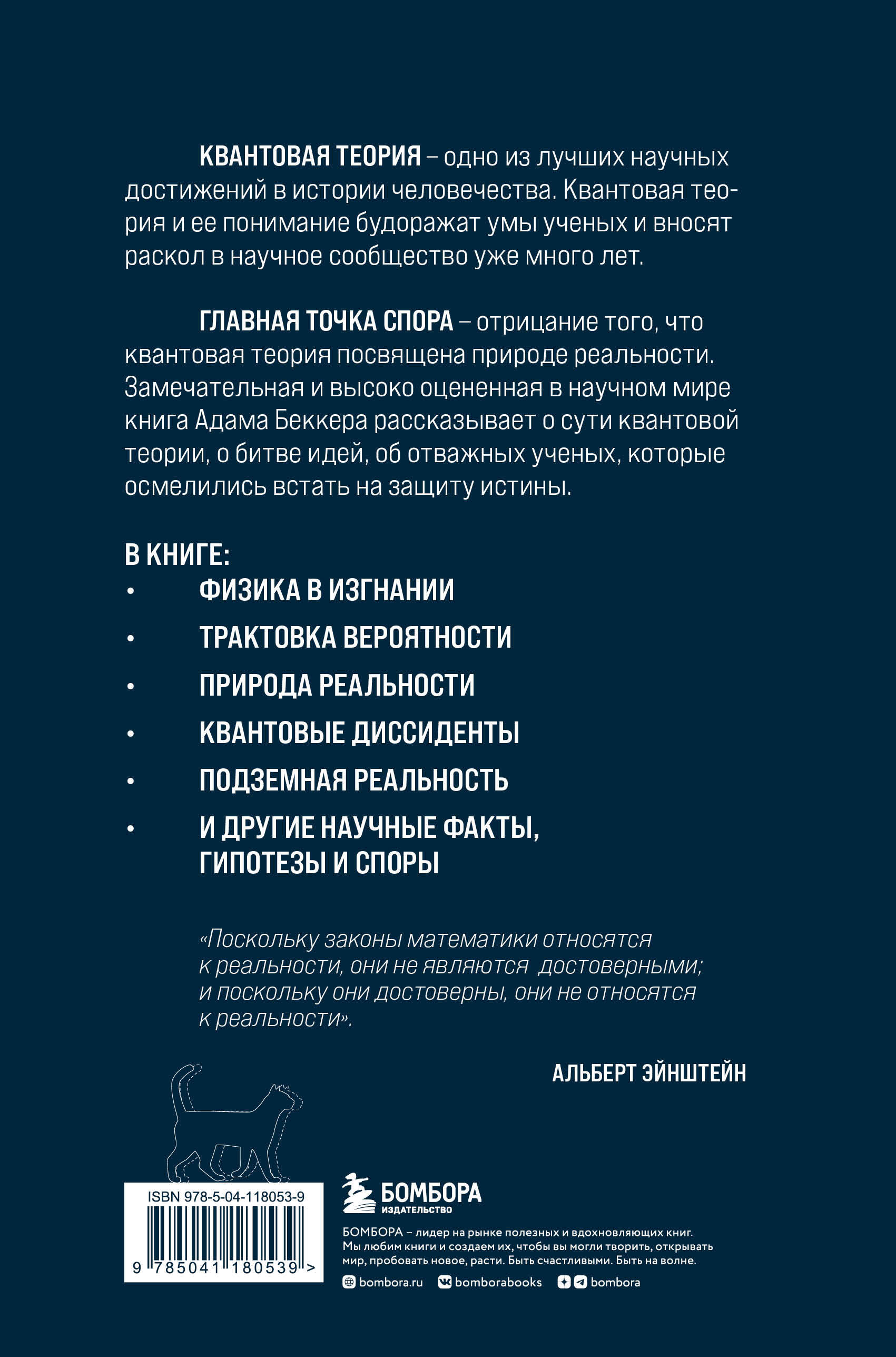 Из книги: «Да, квантовая физика работает. Но игнорировать то, что она рассказывает нам о реальности, значит, делать вид, что мы не замечаем прорехи в нашем понимании мира. Это поражение затрагивает интересы каждого мыслящего обитателя нашего мира, мира, каждый уголок которого преобразован наукой. Поэтому наш рассказ - рассказ о науке как области человеческой деятельности, а значит, не просто о том, как устроена природа, но и о том, как устроены люди».| Издательство | ООО "Издательство "Эксмо" |