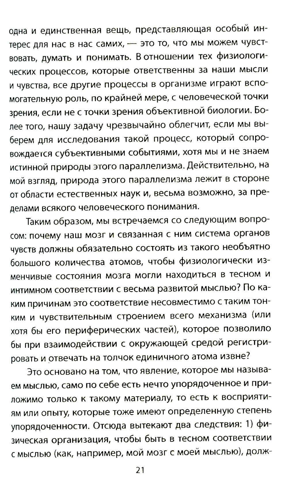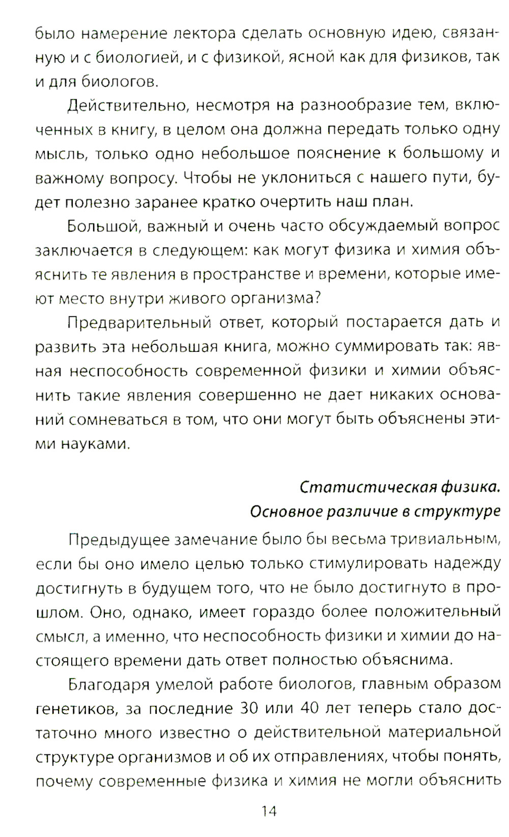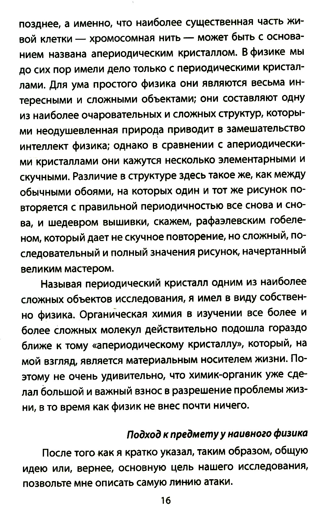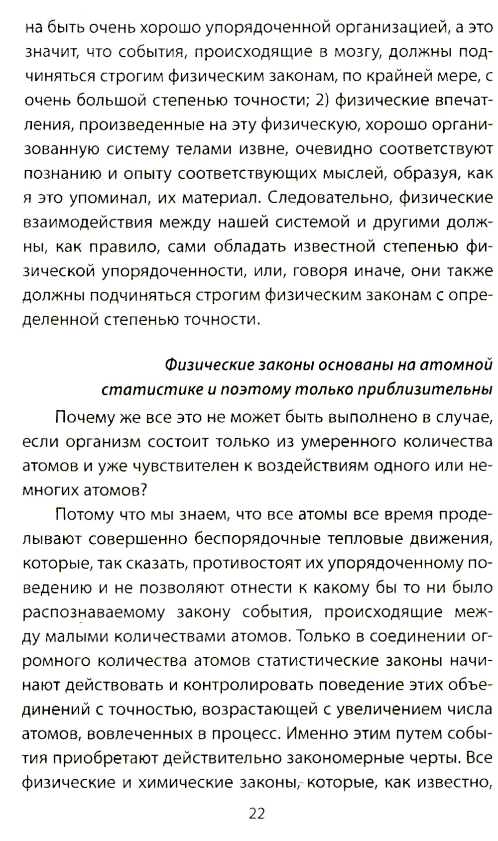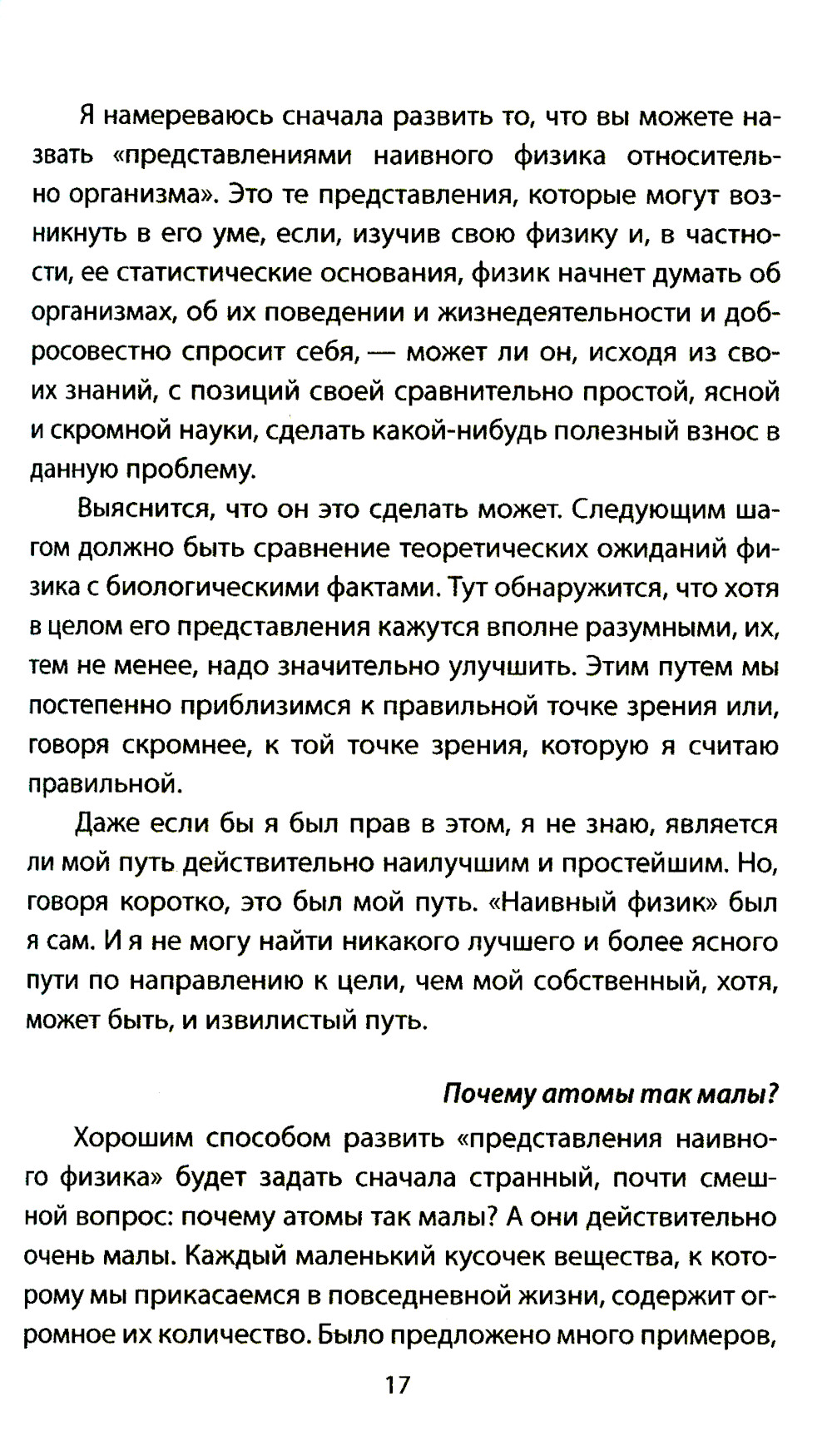 Эту книгу называют философским завещанием Эрвина Шредингера. В ней изложено мировоззрение ученого-естественника, который оказал значительное влияние на развитие современной физики. Все возможно ровно до тех пор, пока не сделан выбор. Представьте, что у вас есть ящик с радиоактивным ядром и емкостью с ядовитым газом. Вероятность того, что ядро распадется и приведет в действие механизм, открывающий емкость, составляет 50%. Если в этот ящик поместить кота и закрыть его, возникнет парадокс Шредингера. Согласно квантовой механике, если над ядром не производится наблюдения, то его состояние описывается смешением двух состояний - распавшегося и нераспавшегося ядра, следовательно, кот, сидящий в ящике, и жив, и мертв одновременно. Для тех, кто хочет знать больше, для тех, кто осмелится выяснить, в чем именно заключается парадокс теории Шредингера, для тех, кто хочет узнать, что такое жизнь с точки зрения физики, великий ученый написал свое последнее и лучшее произведение.| Издательство | Родина |