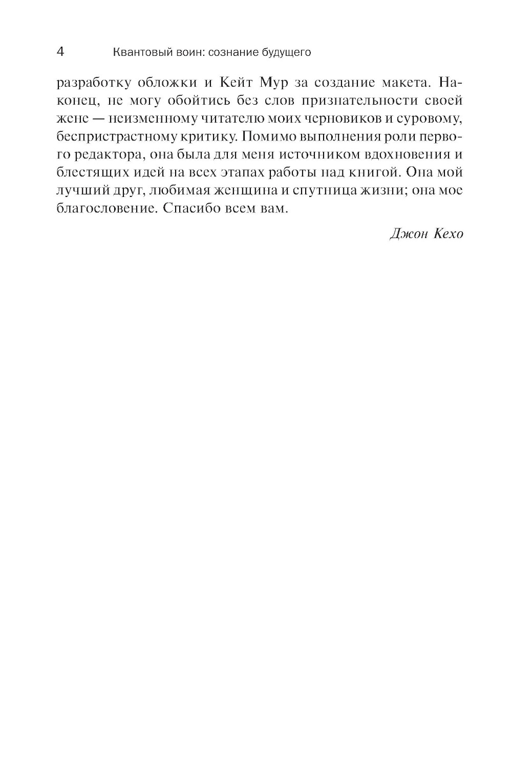 Квантовый воин - новый герой современного мира. Встать на этот путь - значит стать гармоничной личностью, вобрать в себя все лучшее, что только может быть в человеке. Это путь чудесных открытий о самом себе и о необъятной вселенной. Это новый способ достичь успеха и стать счастливым. Книга учит нас применять сенсационные приемы Джона Кехо в повседневной жизни. Если вам не дают покоя тайны бытия и истинный диапазон человеческих возможностей, здесь вы найдете ответы на все свои вопросы.