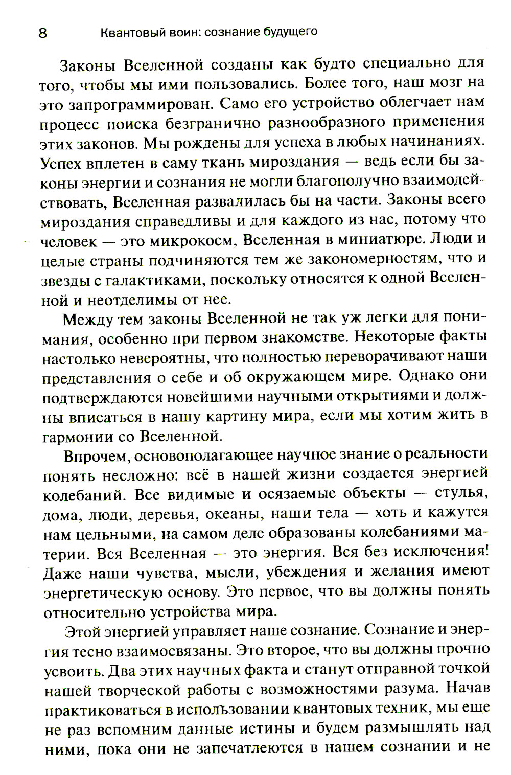 Квантовый воин - новый герой современного мира. Встать на этот путь - значит стать цельной личностью, вобрать в себя все лучшее, что может быть в человеке. Это путь чудесных открытий о самом себе и необъятной Вселенной. Это новый способ достичь успеха и стать счастливым. Книга учит тому, как применять эти революционные техники в повседневной жизни. Если вам не дают покоя тайны бытия и истинный диапазон человеческих возможностей, то в этой книге вы найдете ответы на все свои вопросы.