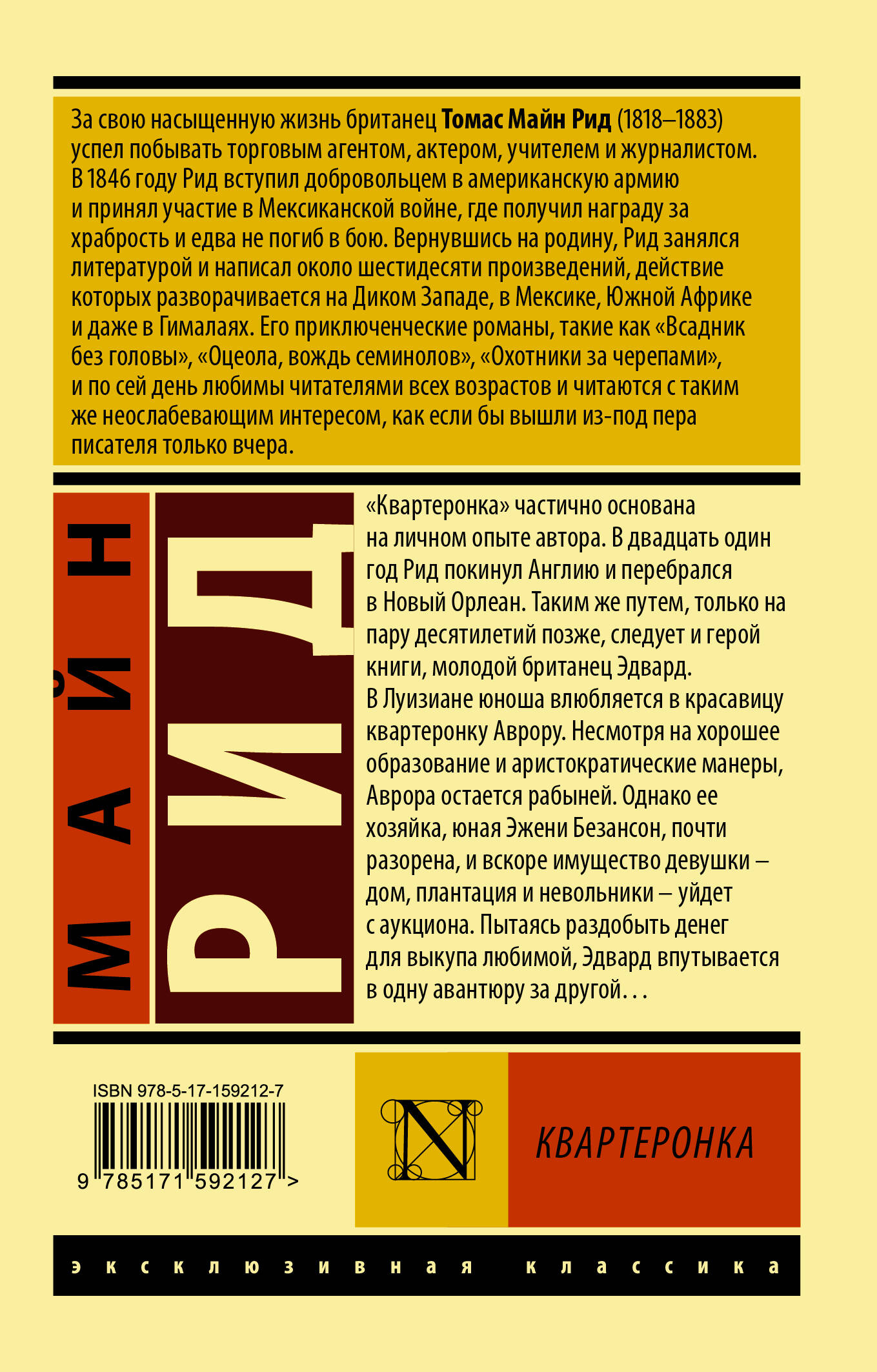 "Квартеронка" частично основана на личном опыте автора. В двадцать один год Рид покинул Англию и перебрался в Новый Орлеан. Таким же путем, только на пару десятилетий позже, следует и герой книги, молодой британец Эдвард. В Луизиане юноша влюбляется в красавицу квартеронку Аврору. Несмотря на хорошее образование и аристократические манеры, Аврора остается рабыней. Однако ее хозяйка, юная Эжени Безансон, почти разорена, и вскоре имущество девушки - дом, плантация и невольники - уйдет с аукциона. Пытаясь раздобыть денег для выкупа любимой, Эдвард впутывается в одну авантюру за другой…