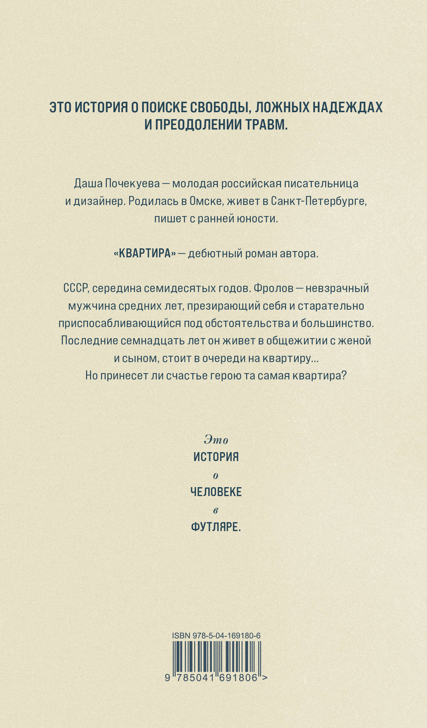 5 причин для покупки: 1. Это дебютный роман Даши Почекуевой, свежий взгляд на сложную тему любви в современных реалиях. 2. Произведение раскрывает глубокие травмы детства, отношения детей с родителями и то, насколько раненным ты можешь стать на пути взросления, построения своей семьи и поиска себя настоящего. 3. Герои романа описаны настолько колоритно, что ты буквально чувствуешь их объем сквозь буквы текста. 4. Хоть действие романа и происходит в СССР, от этого он не становится менее актуальным, наоборот, перед тобой разворачивается спираль времени, которая никого не щадит и обязательно схлопнется. 5. Удивительным образом роман вызывает мощное сопереживание ко всем героям, здесь нет плохих и хороших, здесь нет черного и белого, всё в полутонах, полувысказываниях.| Издательство | ООО "Издательство "Эксмо" |