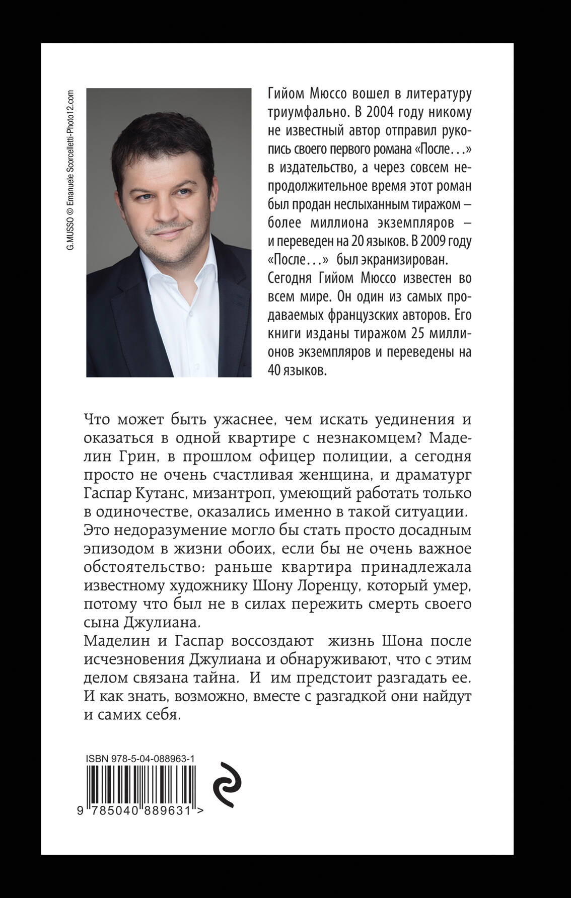 Гийом Мюссо - французский романист, мастер психологической прозы, современный прозаик, завоевавший популярность и признание во всем мире. Совокупный тираж его книг превысил отметку в 33 млн экземпляров. Жанр Современная психологическая проза. «Квартира в Париже» - это переплетение нескольких удивительных историй. Одна - отношения Маделин и Гаспара, бывшего офицера полиции и писателя-мизантропа, которые по ошибке сняли одну и ту же квартиру. Другая - бывшего владельца квартиры, художника Шона Лоренца, чьи запутанные и сложные любовные отношения с женщинами приводят к непоправимой трагедии - потере ребенка. И расследование всех обстоятельств прошлого не дает покоя героям, потому что для обоих это возможность забыть о собственных неудачах и проблемах. Но они даже не могли предполагать, что это дело станет для них судьбоносным. С марта 2017 г. во Франции продано 700 тыс. экземпляров романа «Квартира в Париже». Особенности Изящная манера повествования, глубокий психологизм, запоминающиеся сюжеты, колоритные герои привлекают внимание и так нравятся читателям в романах Гийома Мюссо. Его новая книга, как и предыдущие, наполнена чувственностью и эмоциональностью, а каждая мысль в ней облечена в красивую и точную фразу, способную надолго запасть в сердце.| Издательство | ООО "Издательство "Эксмо" |