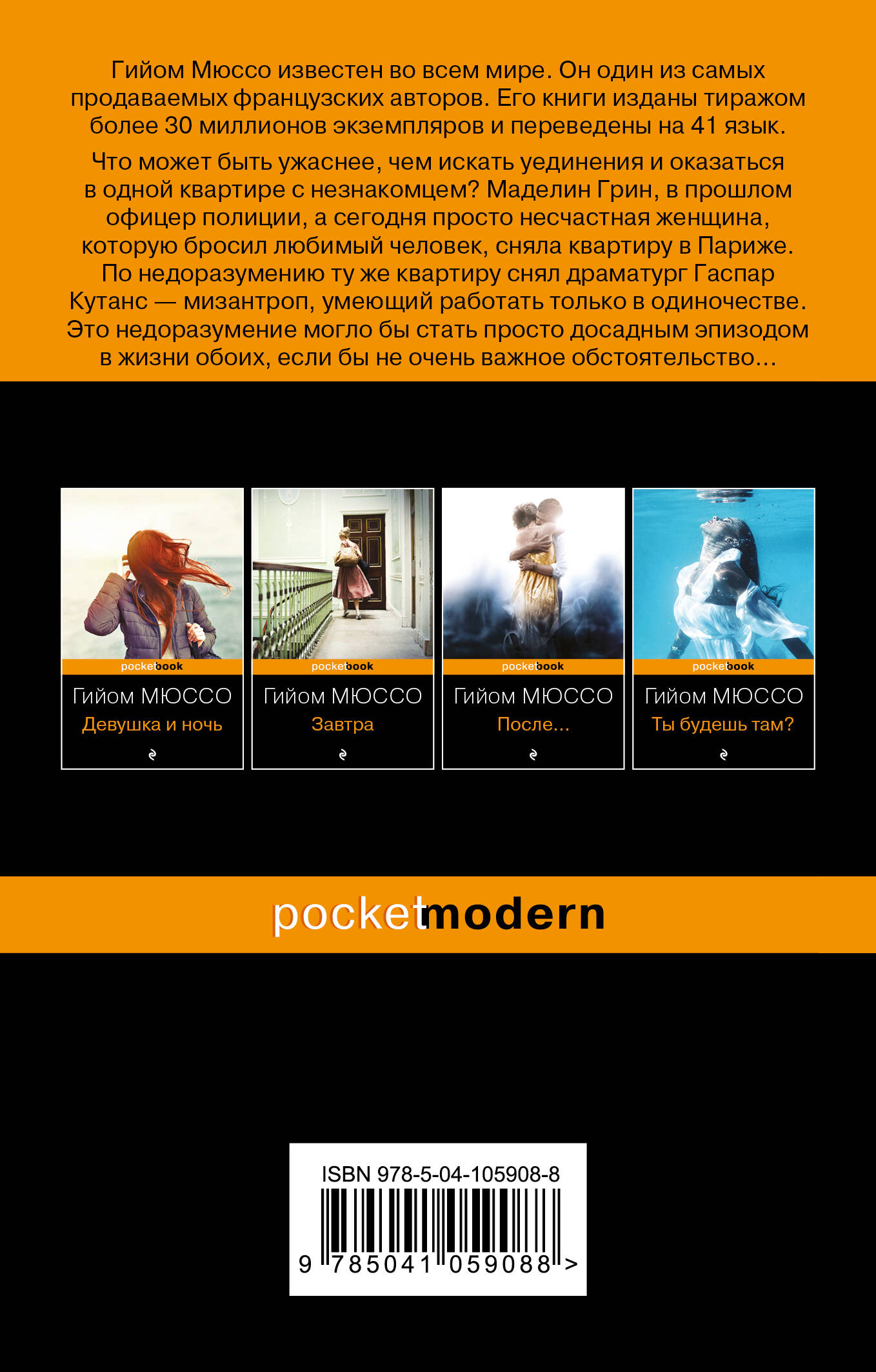 Что может быть ужаснее, чем искать уединения и оказаться в одной квартире с незнакомцем? Маделин Грин, в прошлом офицер полиции, а сегодня просто несчастная женщина, которую бросил любимый человек, сняла квартиру в Париже. По недоразумению ту же квартиру снял драматург Гаспар Кутанс - мизантроп, умеющий работать только в одиночестве. Это недоразумение могло бы стать просто досадным эпизодом в жизни обоих, если бы не очень важное обстоятельство: раньше квартира принадлежала известному художнику Шону Лоренцу, который умер, потому что был не в силах пережить смерть своего сына Джулиана. Маделин и Гаспар воссоздают шаг за шагом его жизнь после исчезновения Джулиана и обнаруживают, что с этим делом связана тайна. И не исключено, что Шон был буквально в шаге от ее разгадки, но смерть помешала ему довести расследование до конца. И теперь это предстоит сделать им - Маделин и Гаспару. Бывшей полицейской и драматургу-мизантропу. И, как знать, возможно, вместе с разгадкой они найдут и самих себя.| Издательство | ООО "Издательство "Эксмо" |