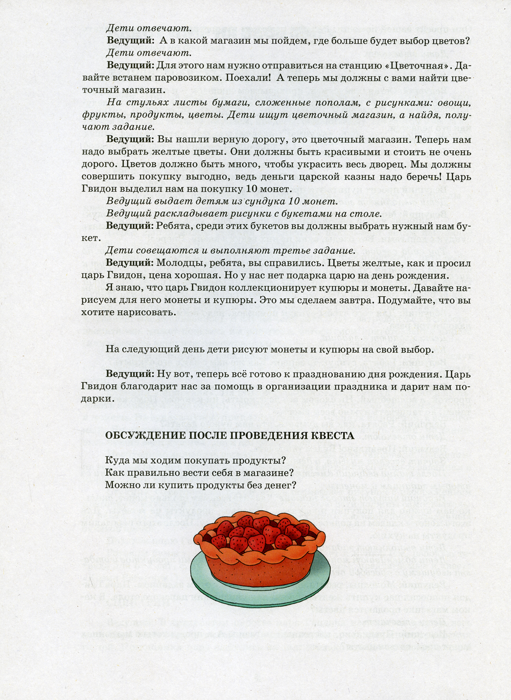 Квест - игровой и интерактивный вид деятельности, расширяющий возможности ребенка и воспитателя в образовательном процессе. Этот вид игр делает обучение более интересным и эмоционально насыщенным. По итогам прохождения каждого квеста детям предлагаются дополнительные вопросы, которые обсуждаются с воспитателем. Для закрепления других важных тем курса «Азы финансовой культуры для дошкольников» рекомендуется провести квест «Козни Бабы-яги».| Издательство | Вита-Пресс |