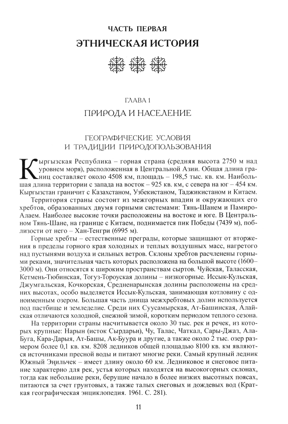 В томе серии «Народы и культуры» с современных научных позиций раскрываются проблемы этнической истории и этносоциального развития кыргызского (киргизского) народа, описываются традиционные занятия и хозяйственная деятельность, навыки природопользования, материальная культура, семейные и общественные отношения, обычаи и обряды семейного и календарного циклов, народные знания, творчество и верования, а также этнокультурные и социально-политические процессы новейшего времени. Совместный труд ведущих кыргызстанских и российских ученых представляет собой масштабное исследование с привлечением новых полевых этнографических и социологических материалов, неизвестных ранее письменных источников, архивных и фотографических документов, археологических артефактов, богатого иллюстративного материала.| Издательство | Наука |