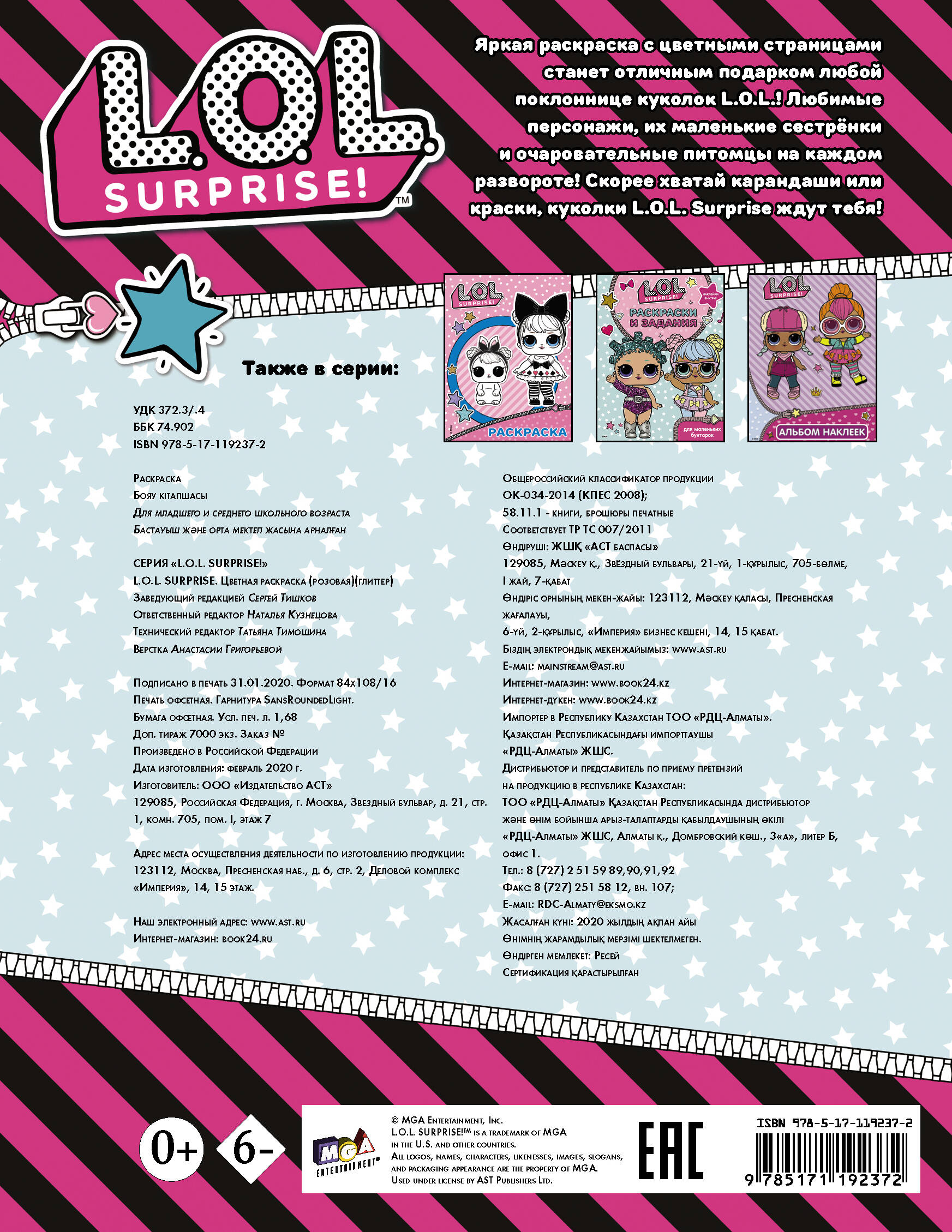 Аннотация: L.O.L. Surprise. Цветная раскраска (розовая) (глиттер)