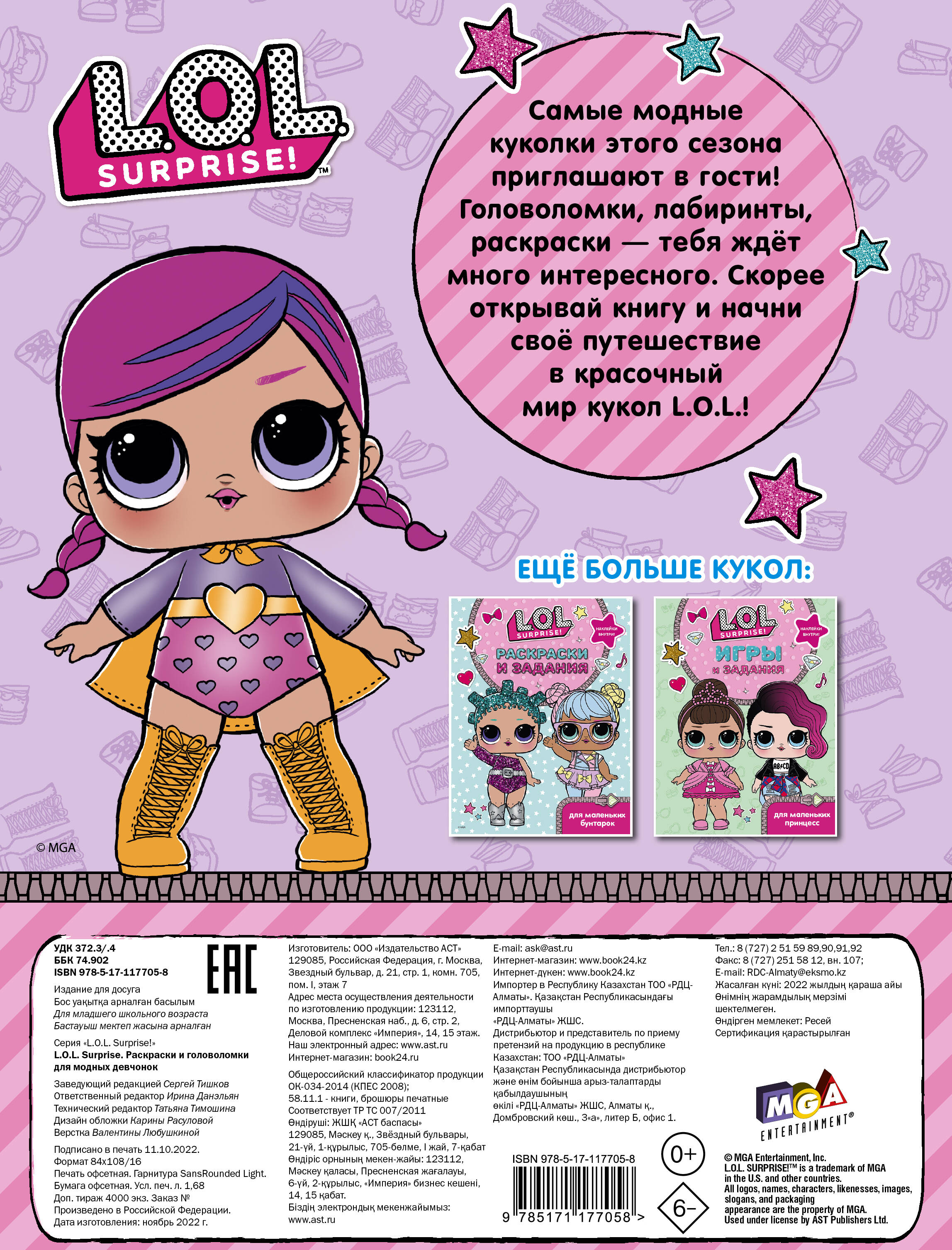 Аннотация: L.O.L. Surprise. Раскраски и головоломки для модных девчонок
