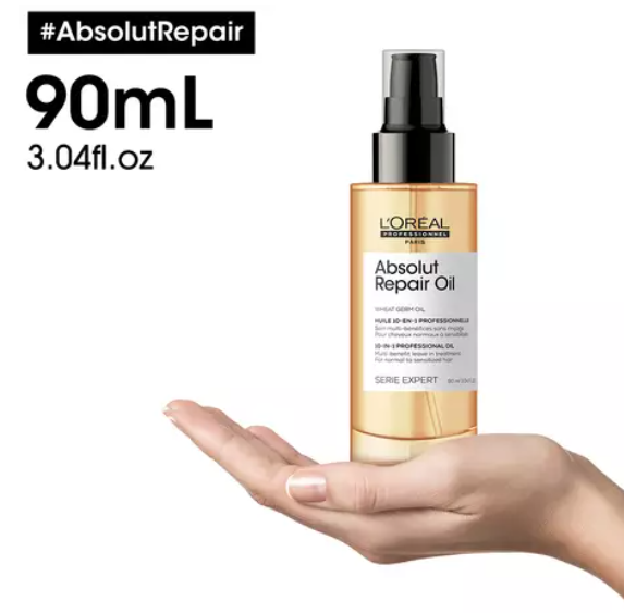 L'Oreal Professionnel Serie Expert Absolut Repair Масло для волос 90 ml - это профессиональное питательное средство, созданное специально для восстановления повреждённых и ослабленных волос. Его уникальная формула с экстрактом золотой киноа и пшеницы глубоко питает и укрепляет волосы, придавая им невероятную мягкость, блеск и эластичность.