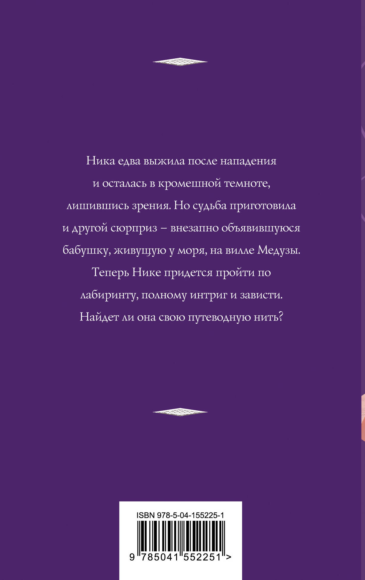 Как быть, если вокруг непроходимая тьма? Ника чудом осталась жива, но лишилась зрения. Судьба приготовила девушке еще один сюрприз - внезапно объявившуюся бабушку. Женщина живет у моря на вилле Медуз. Теперь Нике предстоит сложный путь в глухом лабиринте. Сможет ли она найти из него выход? Татьяна Корсакова - популярный автор любовно-авантюрных романов с элементами мистики. Из-под ее пера вышло более двух десятков книг. Сюжеты рождаются из городских легенд, народных сказаний, древних книг и собственной буйной фантазии.| Издательство | ООО "Издательство "Эксмо" |