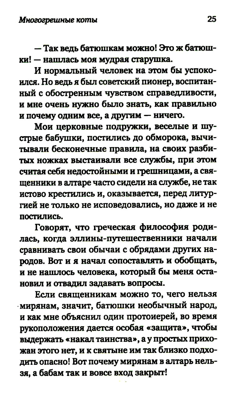 Церковная жизнь современного человека порой похожа на блуждание по запутанному лабиринту: сплошные запреты и предписания, зачастую непонятные и противоречащие друг другу. Весьма непросто бывает разобраться, что в этом бесконечном своде правил укоренено в мудрости Священного Предания, а что мы соблюдаем просто по привычке и из страха сделать что-то не так. Отец Савва со свойственной ему добротой, юмором и недюжинной эрудицией помогает найти путь в этом лабиринте и отличить благочестие страха - от благочестия свободы.| Издательство | Изд. НИКЕЯ |