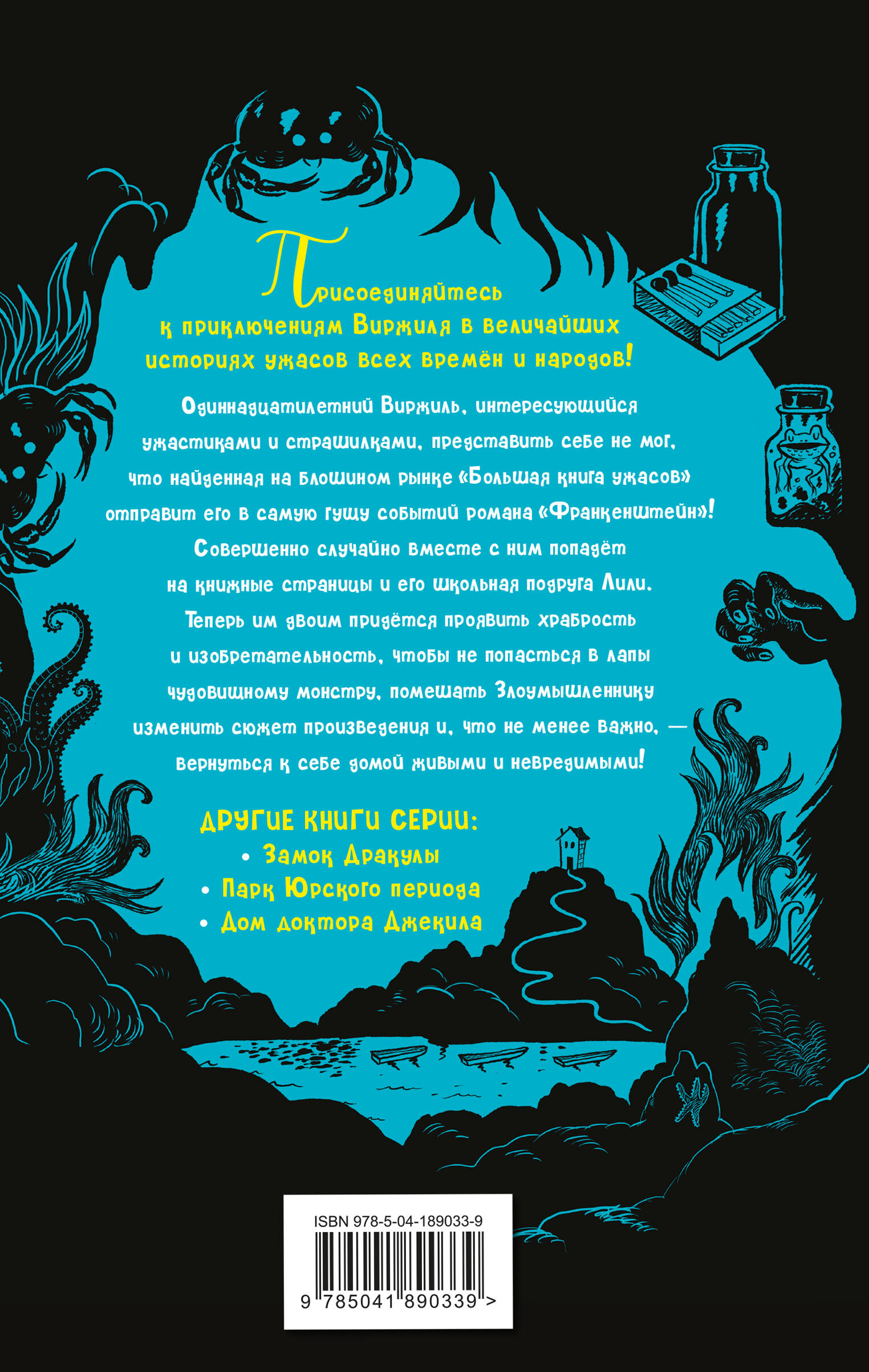 Одиннадцатилетний Виржиль, интересующийся ужастиками и страшилками, представить себе не мог, что найденная на блошином рынке «Большая книга ужасов» отправит его в самую гущу событий романа «Франкенштейн»! Совершенно случайно вместе с ним окажется на книжных страницах и его школьная подруга Лили. Теперь им двоим придётся проявиться храбрость и изобретательность, чтобы не попасться в лапы чудовищному монстру, помешать Злоумышленнику изменить ход произведения и, что не менее важно, - вернуться к себе домой живыми и невредимыми!| Издательство | ООО "Издательство "Эксмо" |