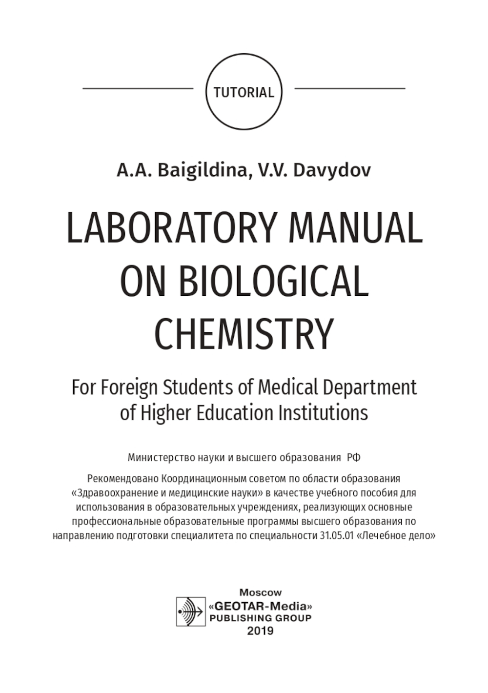 Аннотация: Laboratory Manual on Biological Chemistry: for foreign students of Medical Department of Higher Education Institutions: tutorial