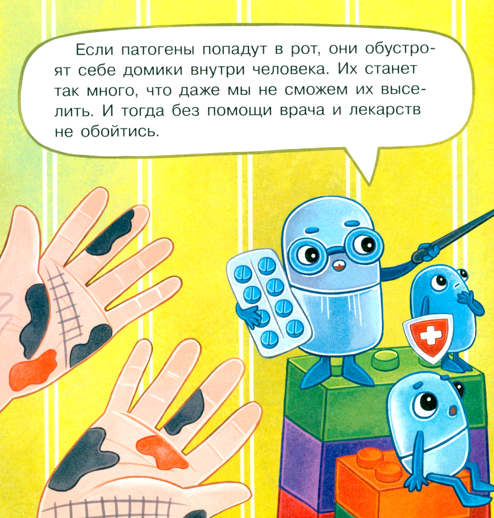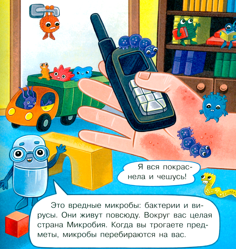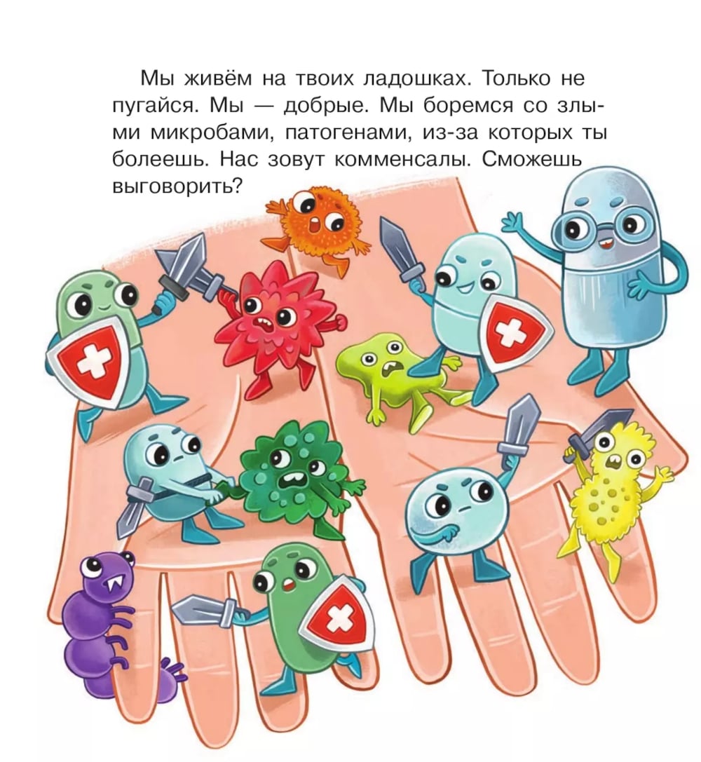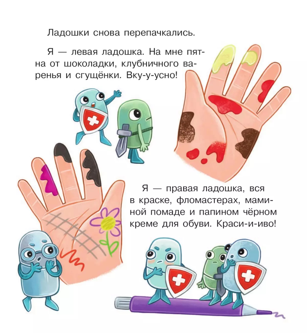 Чумазые ладошки попадают в страну Микробию, где обитают добрые и злые микробы. Ладошки познакомятся с защитниками комменсалами и вредными патогенами. Они узнают, где водятся злые микробы и какие они бывают, почему важно мыться и не брать грязные руки в рот. Вместе с ребятами ладошки найдут путь к воде и мылу и не дадут патогенам запрыгнуть в поезд из Микробии.| Издательство | Просвещение |
