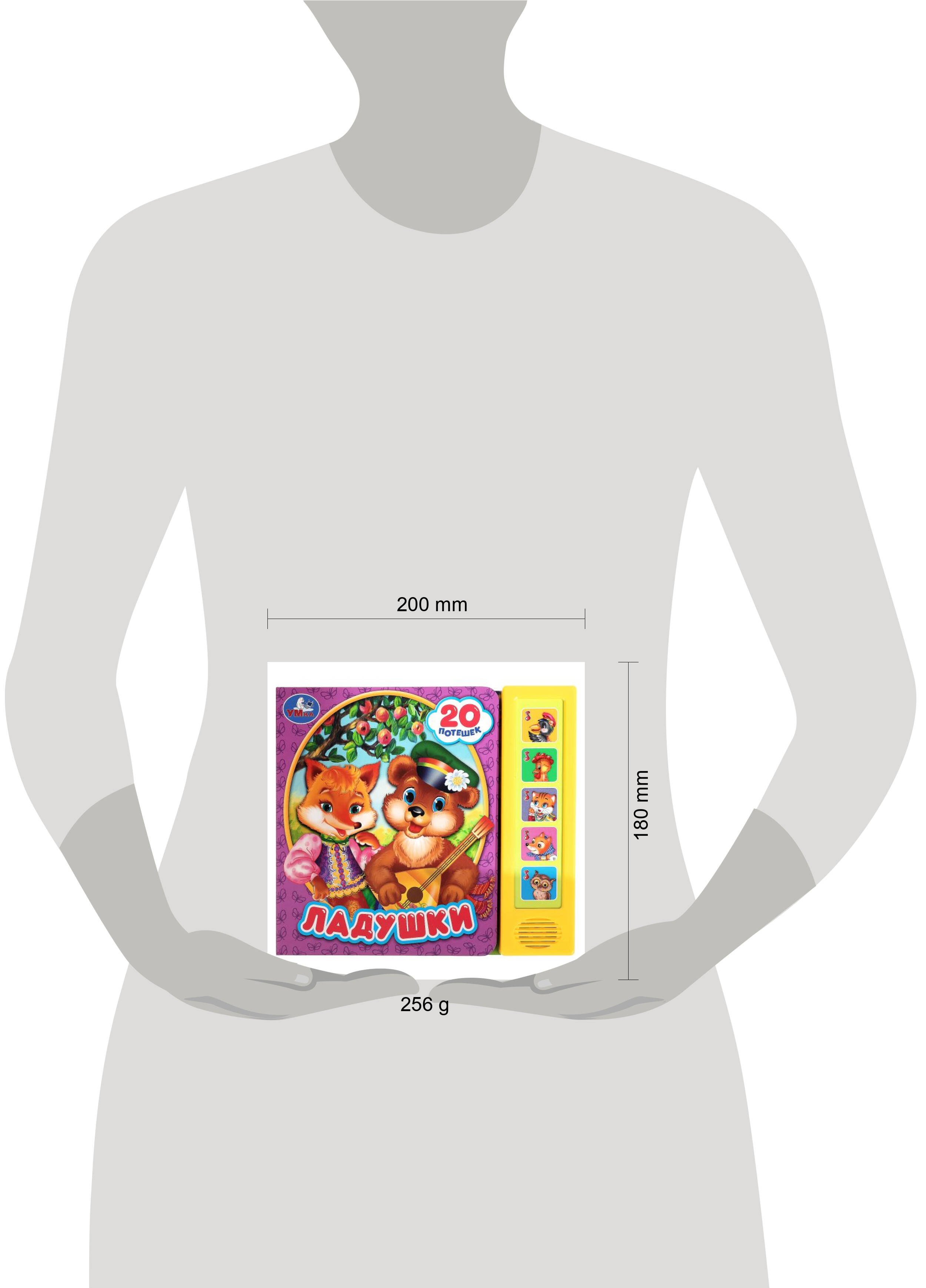 Музыкальная книга "Ладушки" ТМ "УМка" станет отличным подарком для вашего малыша: - 5 звуковых кнопок - 20 песенок: "Ай, дуду-дуду-дуду!", "Ладушки-ладушки, где были?", "Сорока-ворона кашу варила", "Тень-тень-потетень!", "Петушок, петушок - золотой гребешок", "Улита, улита. Высуни рога!", "Пошёл котик на торжок", "Поехали, поехали с орехами, с орехами", "Тили-тили-тили-бом!", "Как у нас-то козёл что за умный был", "Солнышко-вёдрышко, выглянь в окошечко", "Лиса по лесу ходила", "Бежала лесочком лиса с кузовочком", "Заинька, по сеничкам гуляй, таки гуляй!", "Идёт коза рогатая", "Божья коровка, чёрная головка", "Сова, совинька, сова", "Баю-баюшки-баю, не ложися на краю", "Ой, лю-ли, лю-ли, лю-ли!", "А баиньки - баиньки" - красочные иллюстрации - отдельная кнопка Вкл./Выкл. на обороте упаковки Ребёнок с удовольствием будет листать плотные страницы, рассматривать яркие картинки и, конечно, нажимать на кнопки и слушать задорные потешки. Малыш легко освоит включение звука: по нажатию на кнопку песенка включится, при втором нажатии выключится, при третьем - заиграет следующая композиция. На одной кнопке по 2 песенки. Благодаря компактному размеру книгу удобно взять с собой в дорогу. Музыкальная книга ТМ "УМка" расширяет кругозор и развивает: - слуховое восприятие и музыкальный слух - навык чтения - фантазию - образное мышление - память - тактильное восприятие Объём: 10 стр. Формат: 200 х 175 мм. Материал: пластмасса + картон. Работает от 3-х батареек типа LR44 (в комплекте). Рекомендовано детям младшего дошкольного возраста.| Издательство | С-Маркет ООО |