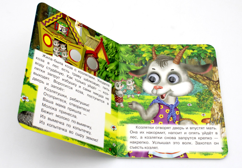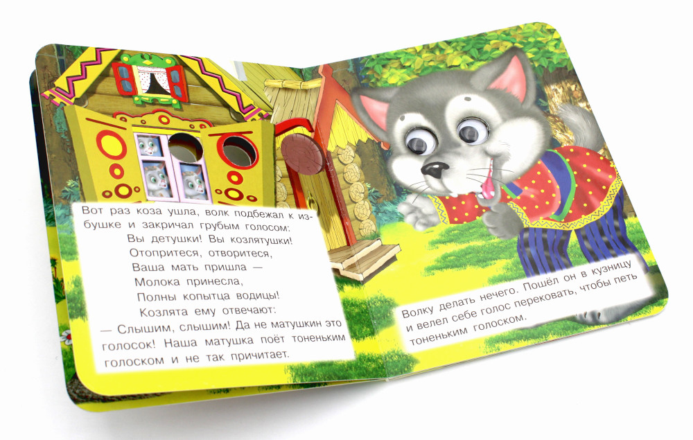 Книжка с вращающимися глазками по мотивам сказки "Волк и семеро козлят" не оставит равнодушным вашего малыша и уже с малых лет взрастит любовь к литературе, а картонные страницы уберегут книжку от повреждений в процессе игры и познавания мира. Для детей дошкольного возраста.| Издательство | ТД Сказочный мир |