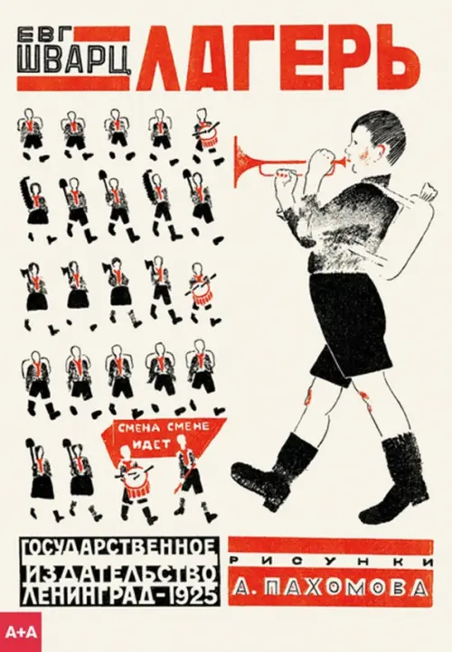Книга Шварца и Пахомова была первой не только в биографиях писателя и художника, она также оказалась прорывом в книжном дизайне, образцом для последующих детгизовских опытов. Влияние В. Лебедева на Пахомова неудивительно, если вспомнить, что Алексей Федорович - его воспитанник по Петроградскому ВХУТЕМАСу (1920-1921). Вся книжка "Лагерь" построена на двух цветах, и при этом ее полосы напоминают репродукции с живописи. Причина - литографская печать, оттиски делались с камней, они роскошно передают фактуру материала, живость зерна литографского камня. Красно-черные заливки хорошо гармонируют с проработкой а-ля сухая кисть. Секрет художника еще и в найденном способе передачи пространства: плоскостное решение композиций восходит к древнерусским иконописным клеймам, к "праздникам" со складней. Пахомов с детства видел и глубоко любил старую икону."