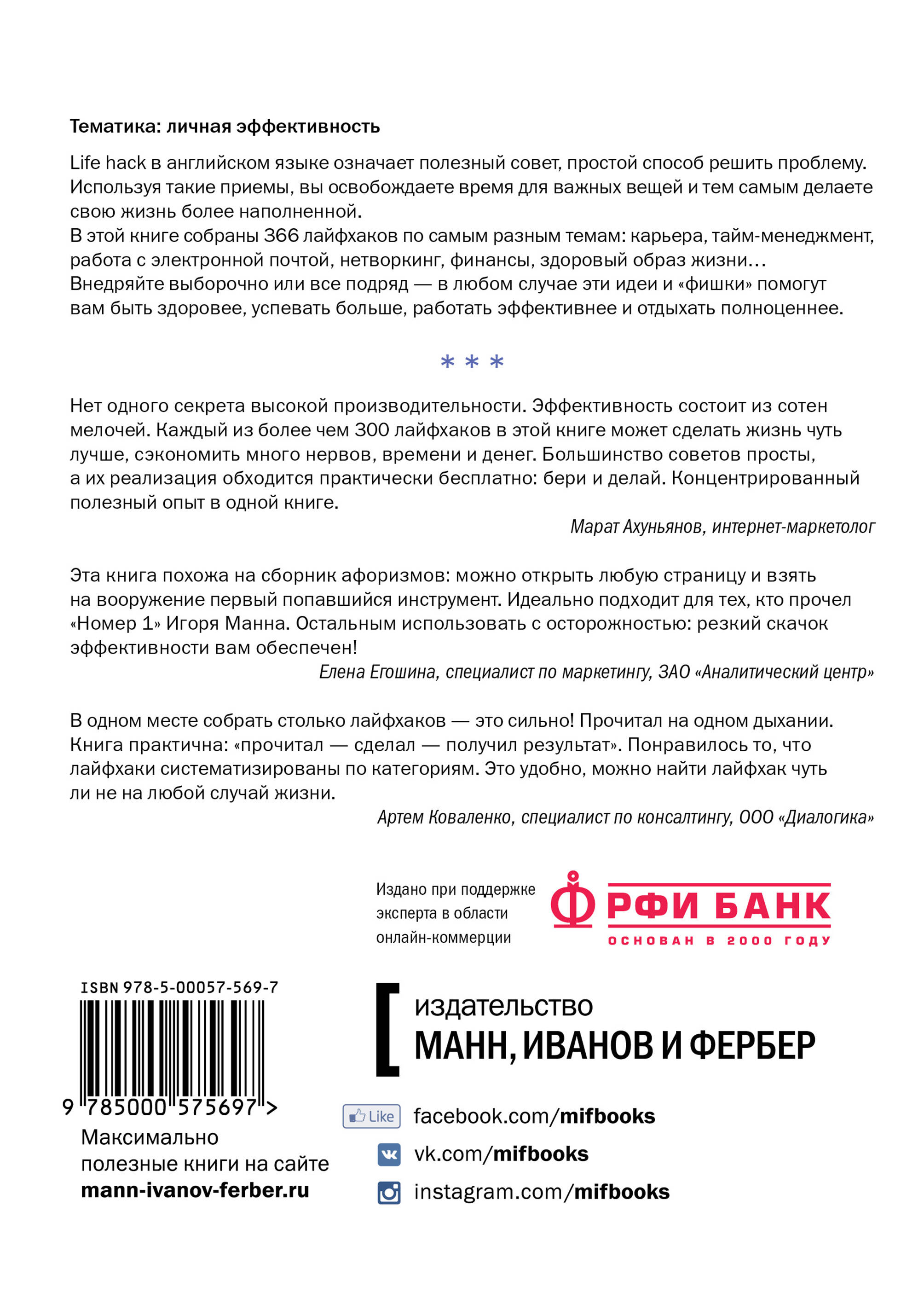 Сборник из 366 лайфхаков - полезных советов, каждый из которых помогает сэкономить массу времени, упростить жизнь, дать хорошее настроение.