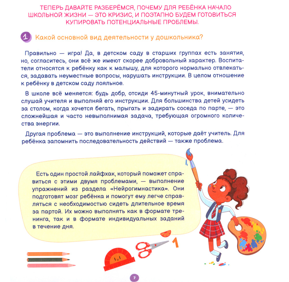 Начало школьной жизни - стресс не только для ребёнка, но и для родителя. Задача книги-тренажёра - помочь вам пройти этот этап жизни максимально легко и сформировать у ребёнка навыки для лёгкого обучения в школе. Необходимость долго сидеть за партой, запоминать последовательность действий, выполнять инструкции, которые даёт учитель, - сложнейшая задача для большинства детей и требует специальной подготовки. Интересные практические задания 21-дневного тренинга прекрасно помогут в этом!| Издательство | ИД "Нева" |