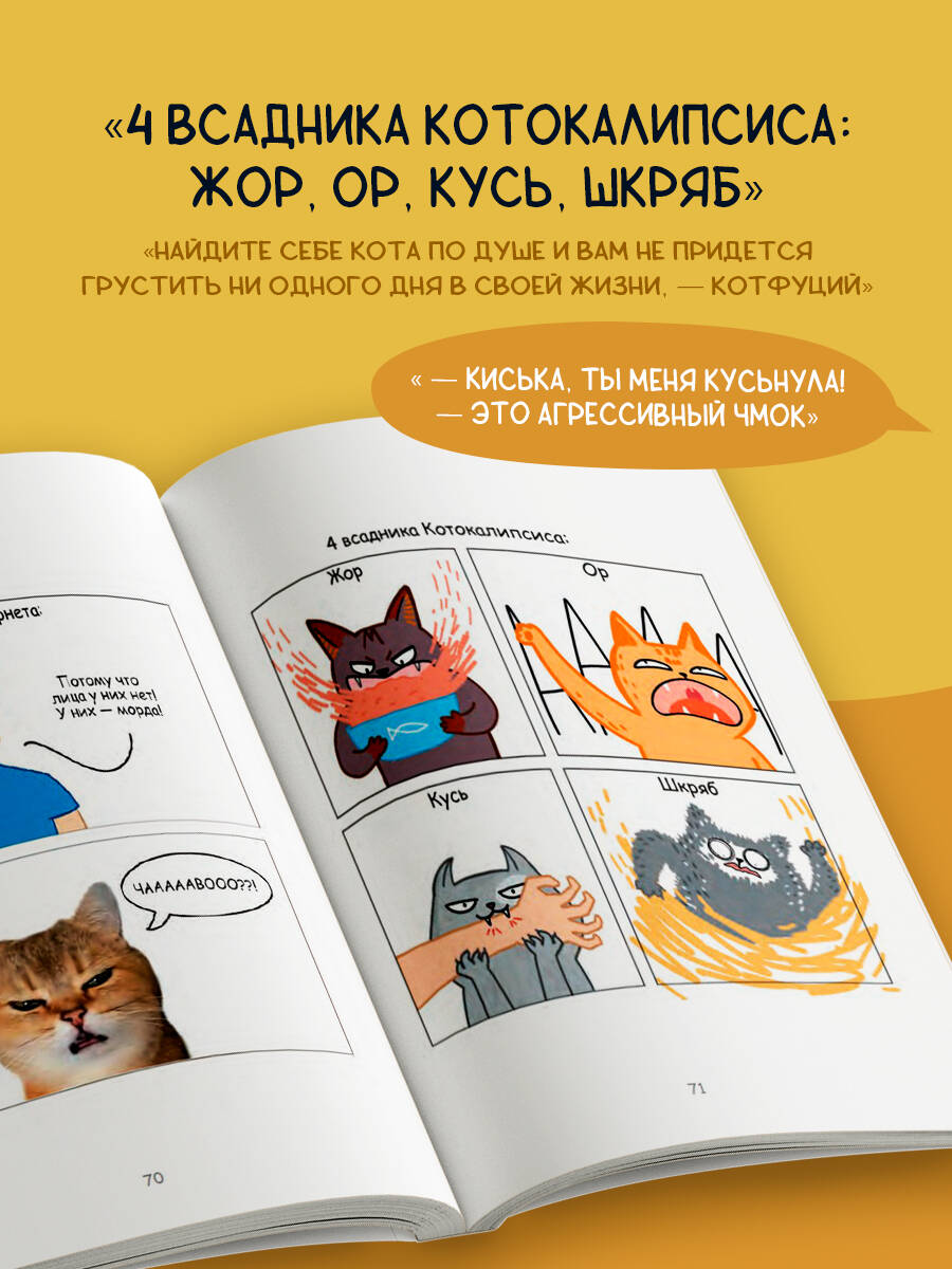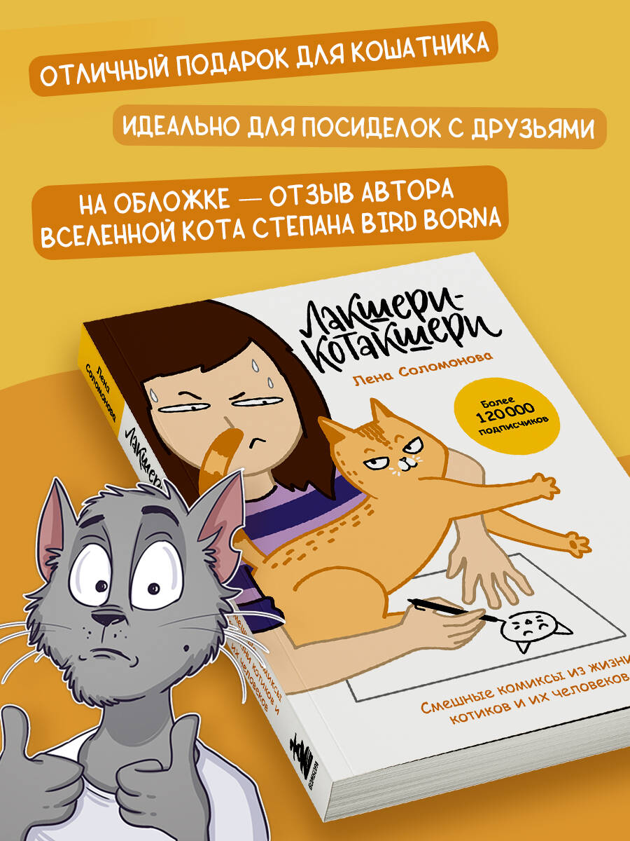 Великий КОТфуций сказал: «Людям не нужны советы. Им нужна лапа, которая поддержит в трудную минуту!» Если по утрам вы просыпаетесь с котом на голове, ваш самый нарядный костюм и макияж из кошачьей шерсти, а без кота и жизнь не та - эта книга точно для вас! Добро пожаловать в котовселенную известного иллюстратора-комиксиста Лены Соломоновой! В забавных комиксах с сюжетами из жизни воинственной Белки, мудрого Арчибальда Котаныча, ревностного Артурчика и кайфуши Дольки вы непременно узнаете себя и своего заМУРчательного питомца. Есть у вас котэ или его еще пока нет - совершенно неважно, благодаря этой книге вы точно прочувствуете, каково это, когда в доме есть кошки и кто в доме настоящий хозяин.| Издательство | ООО "Издательство "Эксмо" |