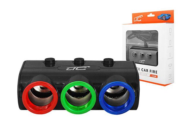 Адаптер CAR FIRE LED + кабель 3 розетки + 2xUSB, 1.2А, 12/24В