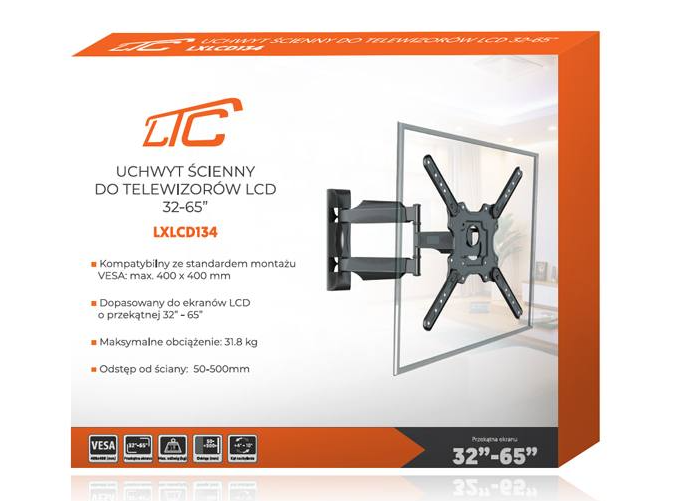 Настенный кронштейн Lamex LXLCD134 предназначен для телевизоров с диагональю от 32 до 65 дюймов. Обеспечивает надежную фиксацию, регулируемый наклон и поворот, что позволяет выбрать оптимальный угол просмотра.