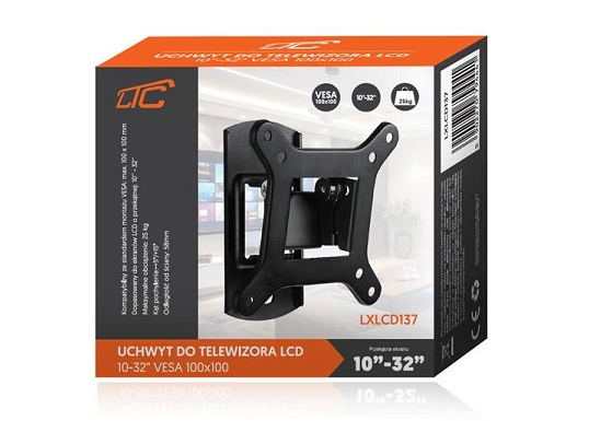 Настенное крепление Lamex LXLCD137 предназначено для ЖК‑телевизоров или мониторов с диагональю 10"-32". Позволяет регулировать угол наклона в диапазоне −15°…+15°, выдерживает нагрузку до 25 кг. Совместимо со стандартами VESA 75×75 и 100×100 мм. Компактный чёрный дизайн экономит пространство и подходит для дома, офиса или коммерческих помещений.