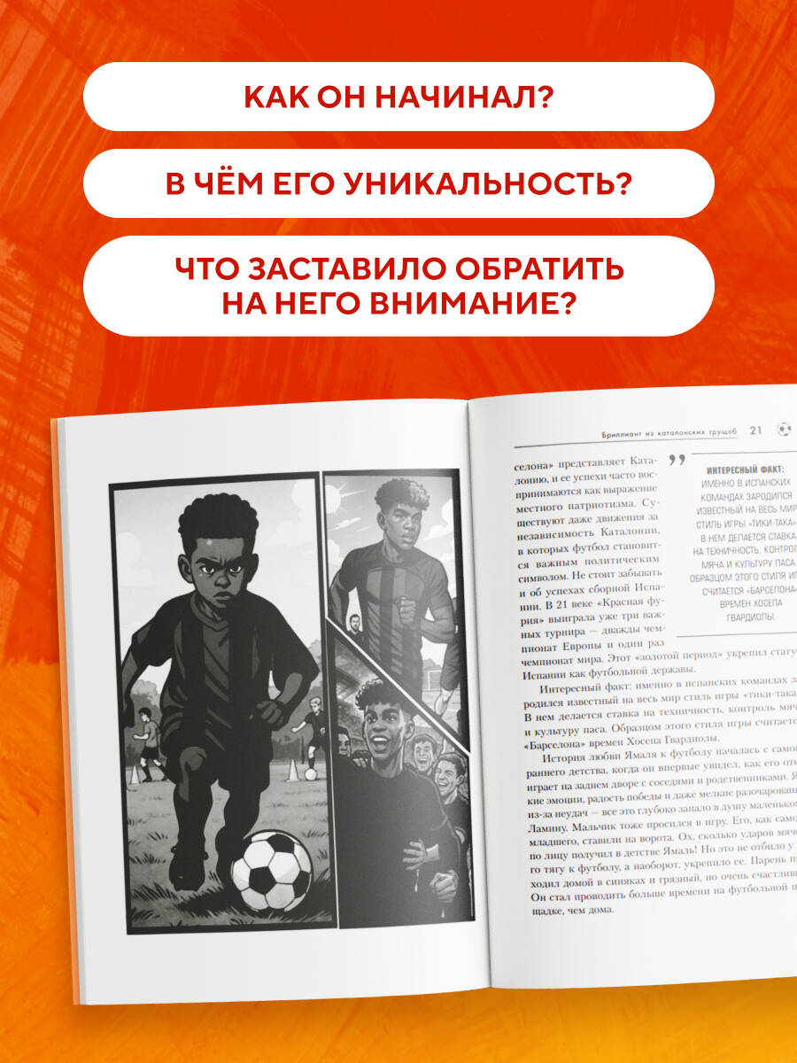 Когда-то он просто гонял мяч по улицам Барселоны, мечтая однажды выйти на большой стадион. А сегодня его имя скандируют тысячи, а эксперты уже окрестили его «новым Месси». Это история Ламина Ямаля, самого юного волшебника на футбольном поле, покорившего сердца миллионов детей по всей планете. Внутри книги вы найдете: - увлекательный рассказ о детстве Ламина, его первых тренировках, трудностях и первых триумфах; - начало футбольного пути: от периода в академии «Барселоны» до символа новой эпохи каталонского футбола; - сюжетные иллюстрации, которые не просто украшают книгу, а рассказывают историю Ямаля вместе с текстом. ЧИТАЙТЕ, МЕЧТАЙТЕ И ВДОХНОВЛЯЙТЕСЬ! ПУСТЬ ИСТОРИЯ ЛАМИНА ЯМАЛЯ СТАНЕТ НАЧАЛОМ ВАШЕЙ, ВЕДЬ В КАЖДОМ ИЗ ВАС ЖИВЕТ ЧЕМПИОН - НУЖНО ТОЛЬКО ПОВЕРИТЬ!| Издательство | ООО "Издательство "Эксмо" |