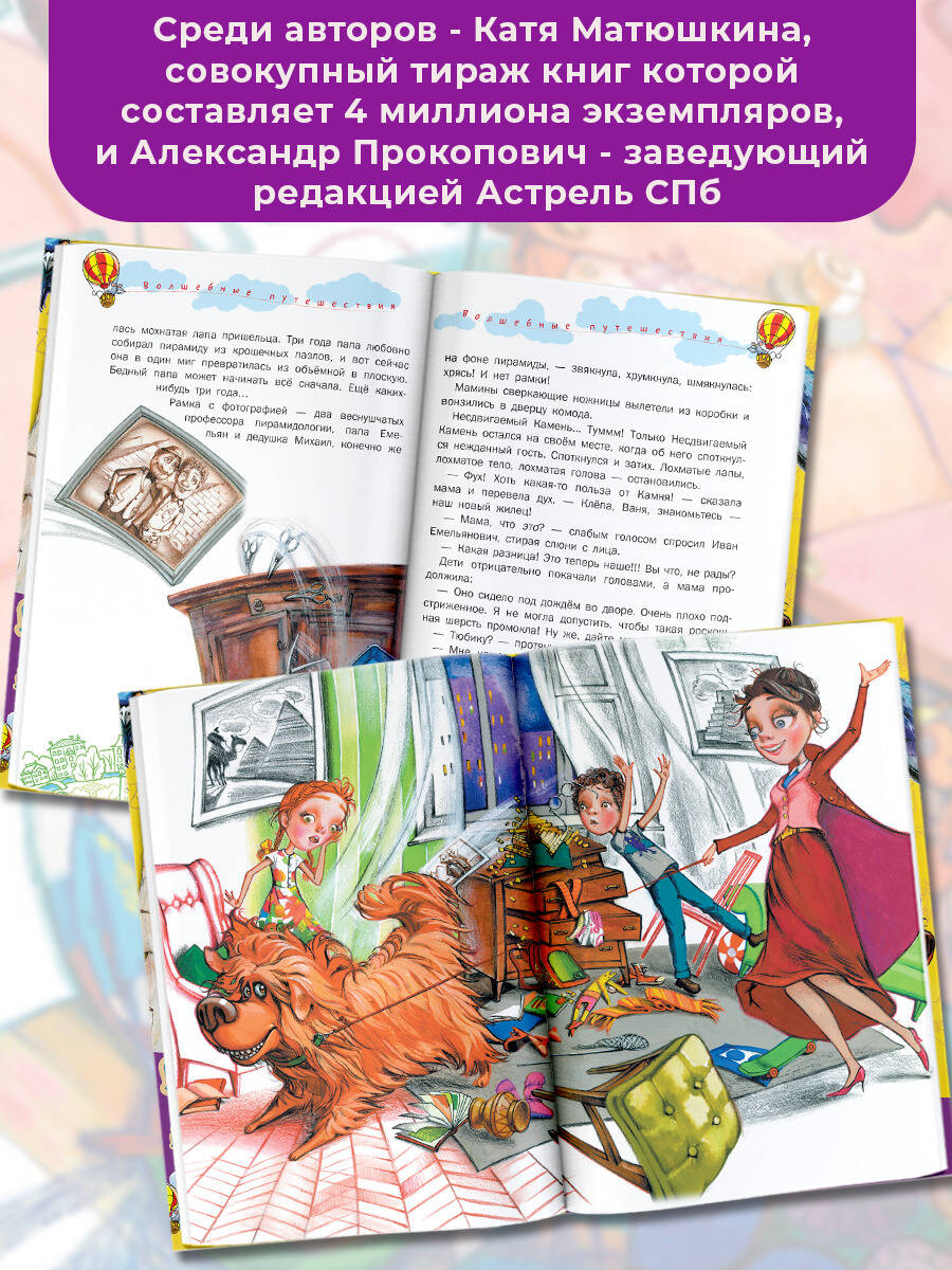 В создании этой книги принимали участие: Александр Прокопович, Елена Шумара, Надежда Щербакова, Виолетта Минина, Светлана Волкова, Софья Яновицкая, Наталья Корсакова и Алиса Рекунова. Захватывающая сказочно-мистическая история для детей старшего дошкольного и младшего школьного возраста. Тайны древних пирамид, харизматичные персонажи, добрый юмор и весёлые диалоги. Интрига, которая держит до последний строчки. Необычные и красочные иллюстрации Катерины Бугровой. Первая книга для самостоятельного чтения.