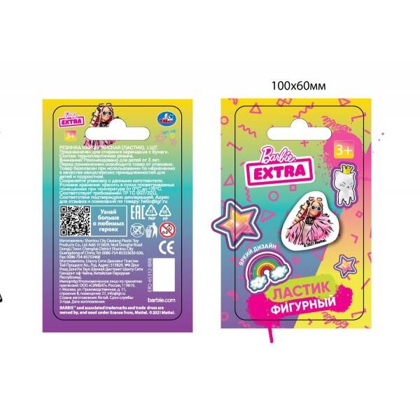 Аннотация: Ластик БАРБИ фигурный, 1шт, блистер Умка в кор.12*24шт