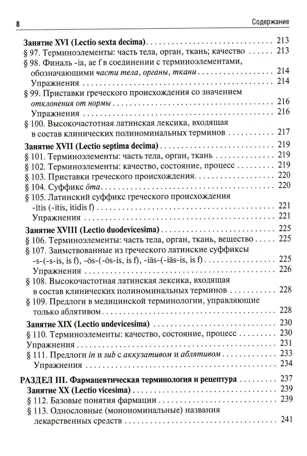 Учебные материалы издания созданы на базе последних медицинских международных латинских номенклатур (Terminologia anatomica; ICD-10; INN) в соответствии с требованиями последних госстандартов (ФГОС-3 и ФГОС-3+), направленными не только на получение знаний и умений, но и на овладение «навыками чтения и письма на латинском языке анатомических, клинических и фармацевтических терминов и рецептов». Для достижения поставленной цели используются принципы постепенства и постоянства, пошаговые тренировки для усвоения однотипных терминов, от простых структурных типов словосочетаний и сложных слов к многокомпонентным анатомическим, клиническим и фармацевтическим словосочетаниям, в том числе с предложными определениями. При этом применяется ограниченное число преимущественно высокочастотной, постоянно повторяемой терминологической лексики: «Уметь использовать не менее 900 терминологических единиц и терминоэлементов» (ФГОС-3). Учебник по дисциплине «Латинский язык» предназначен для всех направлений подготовки (специальностей) медицинских вузов, кроме «Фармации» и «Биотехнологии».| Издательство | ГЭОТАР-Медиа |