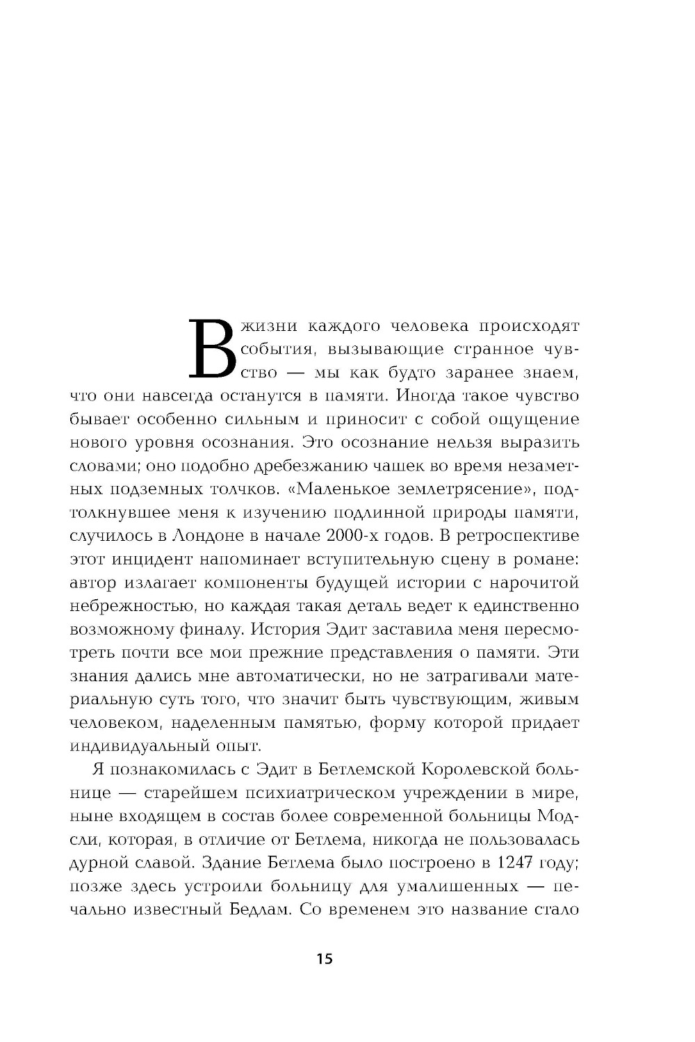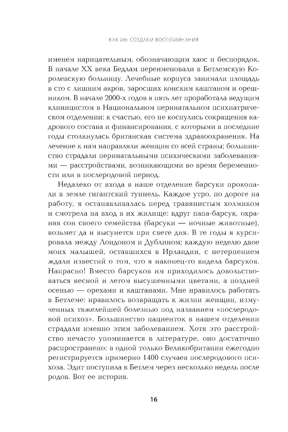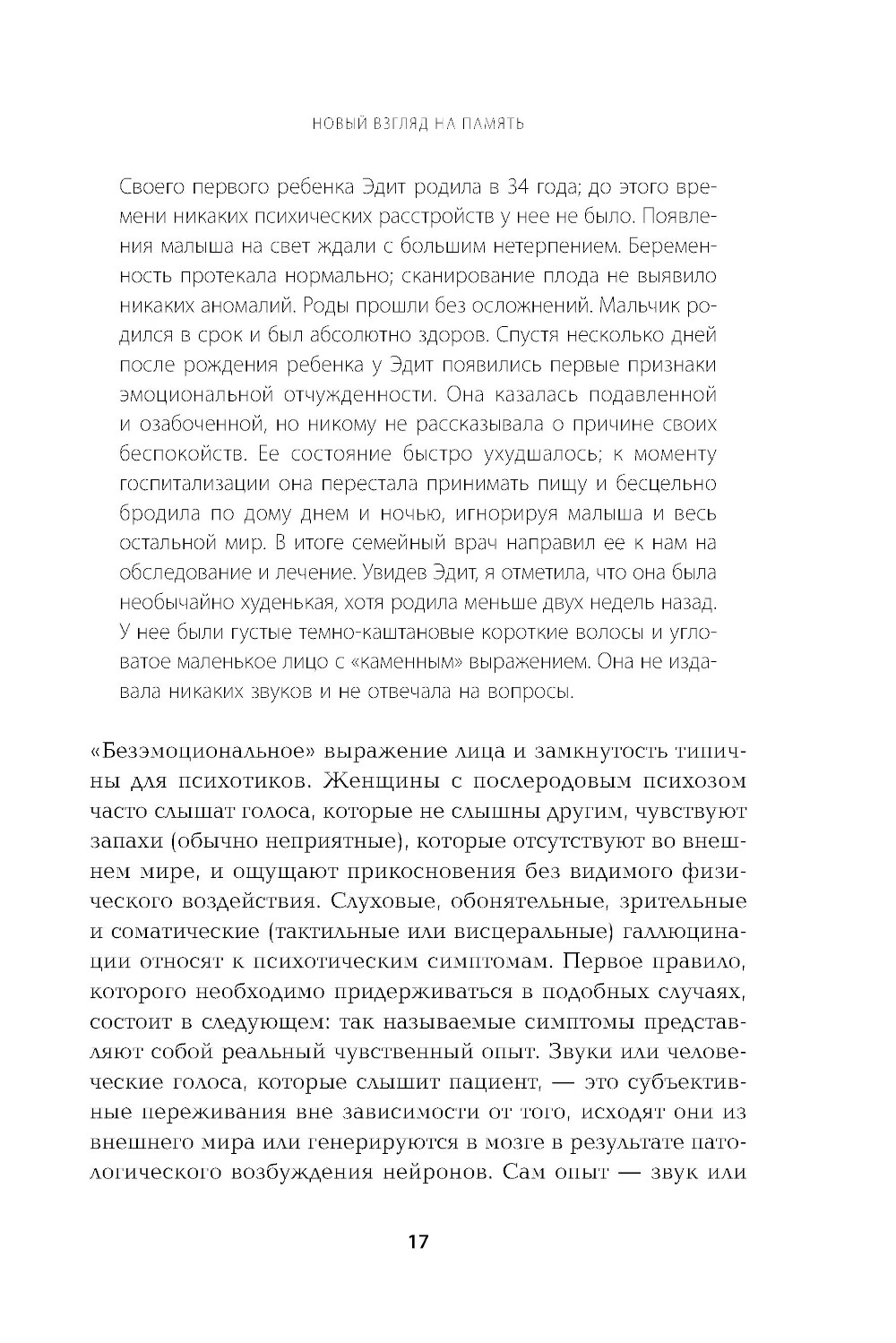 Сразу после родов Эдит перестала заботиться о своем малыше. Мать была убеждена, что ребенок в ее руках не тот, кого она родила. Эдит верила, что малыша, а затем и мужа, подменили злые силы, а вокруг нее заговор. Именно эта история положила начало долгому научному исследованию психиатра Вероника О'Кин о природе памяти. Почему же память заставляет переживать события заново и мы в подробностях помним то, чего никогда не было? Автор приводит пронзительные истории своих пациентов, в которые трудно поверить. На протяжении 36 лет она исследует мозг и раскрывает: как воспоминания формируют нас и определяют будущее каждого человека. Вероника О'Кин использует последние нейробиологические исследования, чтобы ответить на вопросы: почему воспоминания могут вызывать в нас дрожь или, наоборот, прилив сил; почему мы чувствуем запахи и прикосновения, которых нет на самом деле; существуют ли «истинные» и «ложные» воспоминания; как убедиться в том, что происходящее вокруг нас сейчас - реально; каким образом фольклор и литература помогают ученым в изучении памяти.| Издательство | Эксмо |