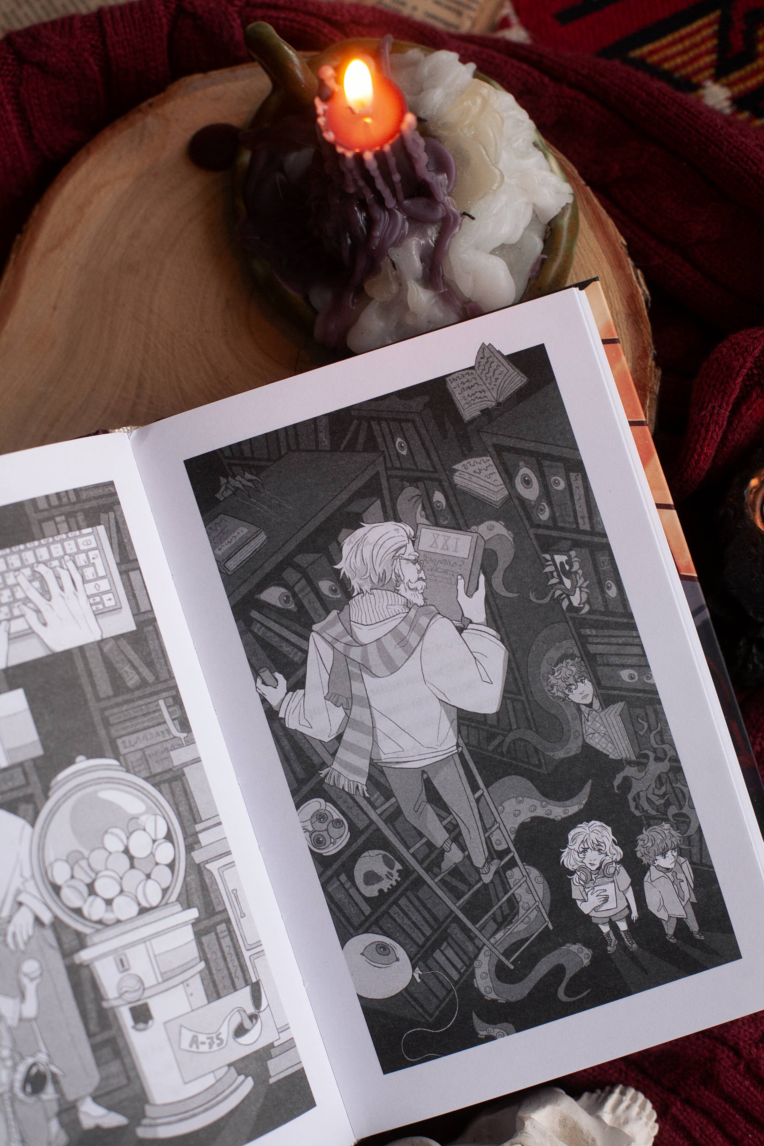 Атмосфера старинного книжного, в котором продают только ужастики Про книги, магию и секреты прошлого Иллюстрации с комиксовыми вставками| Издательство | МИФ ООО |