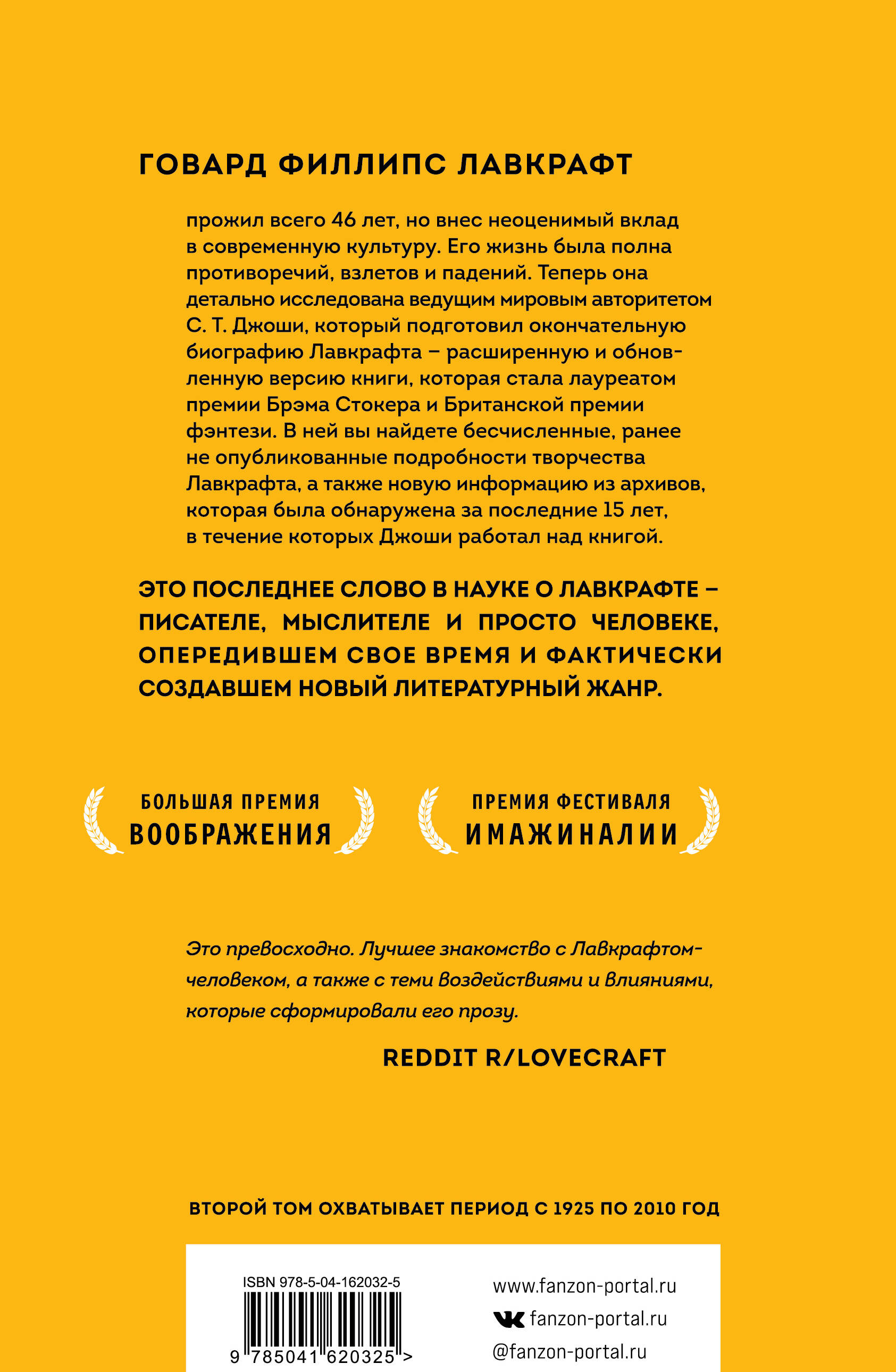 Говард Филлипс Лавкрафт. Эксцентричный затворник из Провиденса. Смелый путешественник. Отец современного сверхъестественного ужаса. Создатель бога Ктулху, магии оккультного «Некрономикона» и одновременно атеист. Автор самиздата. Последний джентльмен 20-го века. Добрый друг с отличным чувством юмора. Расист и женоненавистник. Верный муж. Соавтор-бессребреник. Дилетант и видный редактор. Парадоксальный мыслитель. Человек науки, не закончивший школу. Кошмарный писатель и графоман. Изысканный мастер литературы ужасов. Все эти противоречивые мнения в чем-то правдивы. И для того, чтобы исследовать жизнь и составить полное впечатление о личности и эпохе Лавкрафта, и написана эта биография. Перед вами расширенная и обновленная двухтомная версия монументальной биографии, получившей премию Брэма Стокера и Британскую премию фэнтези. Теперь два тома в одном комплекте! «На днях я получил монументальную биографию Лавкрафта и с тех пор изучаю ее... Каждая крупная библиотека в мире обязана иметь эти два тома в своем фонде. И Джоши следует признать главным биографом, которым он и так зарекомендовал себя предыдущим изданием». - ТОМАС ЛИГОТТИ «Окончательная биография». - ДЖОЙС КЭРОЛ ОУТС «Исчерпывающий тему фолиант служит окончательной биографией Лавкрафта». - PUBLISHERS WEEKLY| Издательство | ООО "Издательство "Эксмо" |